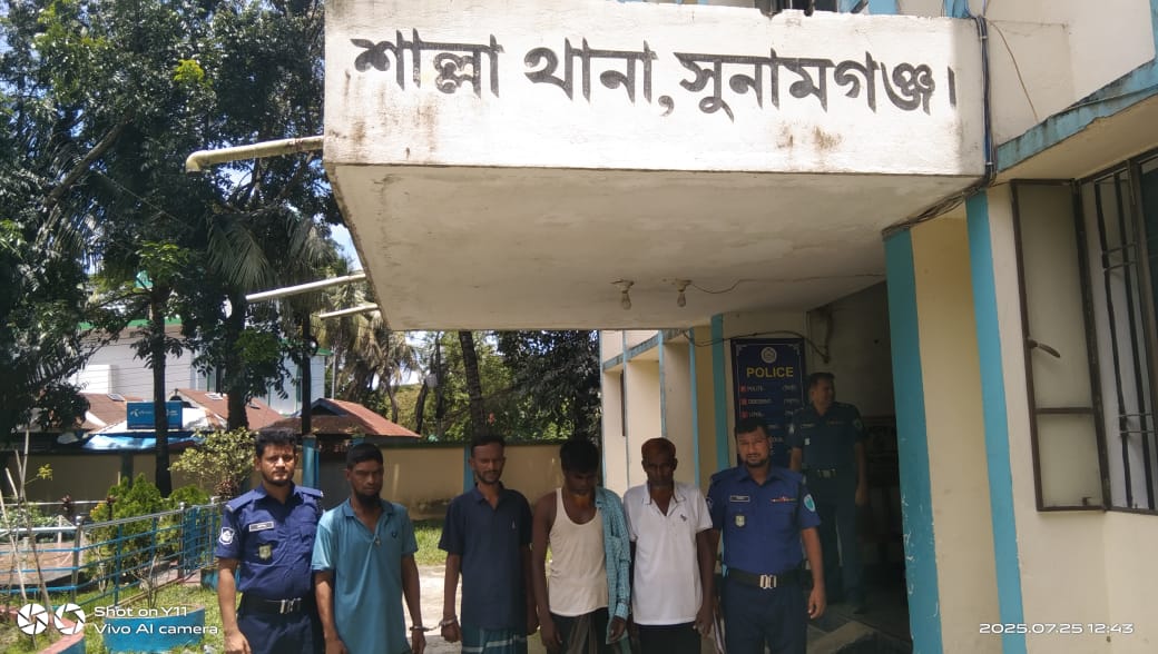 শাল্লায় পুলিশের বিশেষ অভিযানে গ্রেফতার ৫, মাদক-জুয়াসহ নানা অপরাধে জড়িত