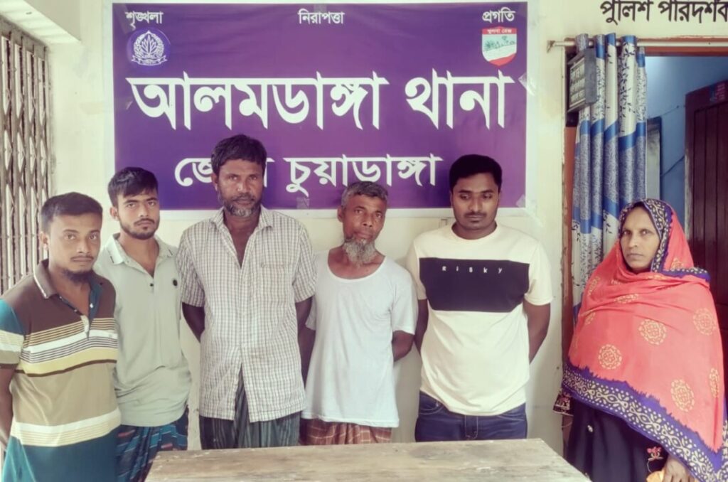 চুয়াডাঙ্গার আলমডাঙ্গা থানা পুলিশের পরিচালিত বিশেষ অভিযানে চিৎলা ও চিৎলা পালপাড়া এলাকার ছয়জন গ্রেফতারি পরোয়ানাভুক্ত আসামিকে গ্রেফতার করা হয়েছে। বৃহস্পতিবার রাতে থানার অফিসার ইনচার্জ মুহাম্মদ মাসুদুর রহমান পিপিএম-এর নেতৃত্বে পুলিশের একটি দল এই অভিযান পরিচালনা করে। গ্রেফতার হওয়া ব্যক্তিদের মধ্যে রয়েছেন—চিৎলা গ্রামের মৃত শাহাদত মণ্ডলের ছেলে জিনারুল ইসলাম, তার ছেলে হাশর আলী এবং মৃত শাহাদত মণ্ডলের আরেক ছেলে ইকরামুল হোসেন। একই এলাকার চিৎলা পালপাড়া থেকে গ্রেফতার করা হয়েছে বুধাই মণ্ডলের ছেলে শাহাজামাল, তার ছেলে জনি এবং স্ত্রী মালা খাতুনকে।তাদের বিরুদ্ধে আলমডাঙ্গা থানায় দায়েরকৃত পৃথক দুটি মামলায় মারধর, হামলা, নারী লাঞ্ছনা, হত্যাচেষ্টা, হুমকি-ধামকি ও অনধিকার প্রবেশসহ ফৌজদারি দণ্ডবিধির একাধিক ধারায় অভিযোগ রয়েছে।