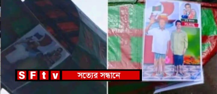 কুড়িগ্রাম প্রতিনিধিঃ বাঁশ ও কাপড় দিয়ে তৈরি একটি প্রতীকী নৌকা রাতের আঁধারে রাস্তায় ঝুলিয়ে দেওয়ার ঘটনায় আওয়ামী লীগ কর্মী ময়নাল হক (৩৫) কে গ্রেফতার করেছে পুলিশ। এসময় ওই নৌকার সঙ্গে ডিজিটাল ব্যানারে ‘জয় বাংলা, জয় বঙ্গবন্ধু’ লেখা স্লোগান এবং নিজেদের ছবি ঝুলিয়ে দেওয়া হয়।