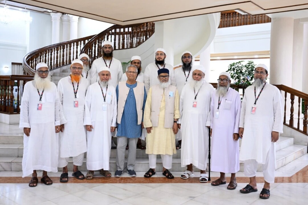 শনিবার রাজধানীর রাষ্ট্রীয় অতিথি ভবন যমুনায় হেফাজতে ইসলাম বাংলাদেশের শীর্ষ নেতৃবৃন্দের সঙ্গে প্রধান উপদেষ্টা প্রফেসর মুহাম্মদ ইউনূসের একটি গুরুত্বপূর্ণ বৈঠক অনুষ্ঠিত হয়েছে।