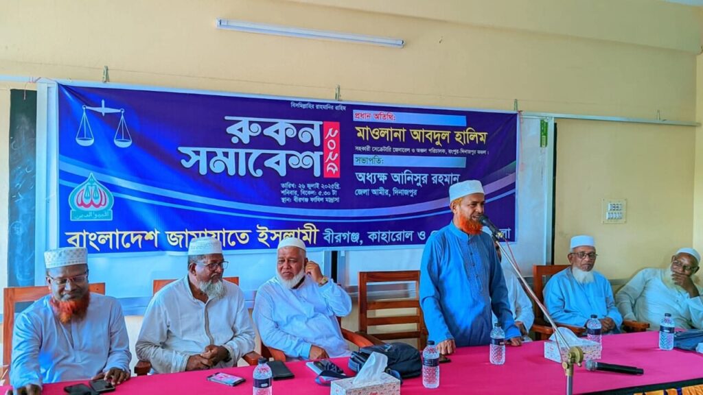 বাংলাদেশ জামায়াতে ইসলামীর সহকারী সেক্রেটারি জেনারেল ও রংপুর-দিনাজপুর অঞ্চল পরিচালক মাওলানা আবদুল হালিম বলেছেন, দেশের আগামী জাতীয় নির্বাচনে অবাধ, সুষ্ঠু ও নিরপেক্ষ অংশগ্রহণ নিশ্চিত করতে অন্তর্বর্তীকালীন সরকারকে অবশ্যই ‘লেভেল প্লেয়িং ফিল্ড’ তৈরি করতে হবে। ২৬ জুলাই (শনিবার) দিনাজপুর শহর, চিরিরবন্দর ও বীরগঞ্জের ছয়টি ভিন্ন ভিন্ন রুকন (পুরুষ ও মহিলা) সমাবেশে প্রধান অতিথির বক্তব্যে তিনি বলেন, “শত জুলুমের পরও জামায়াতকে আদর্শচ্যুত করা যায়নি। আমাদের রুকনদের দ্বীন ও দেশের জন্য সর্বোচ্চ ত্যাগ স্বীকারে প্রস্তুত থাকতে হবে।”