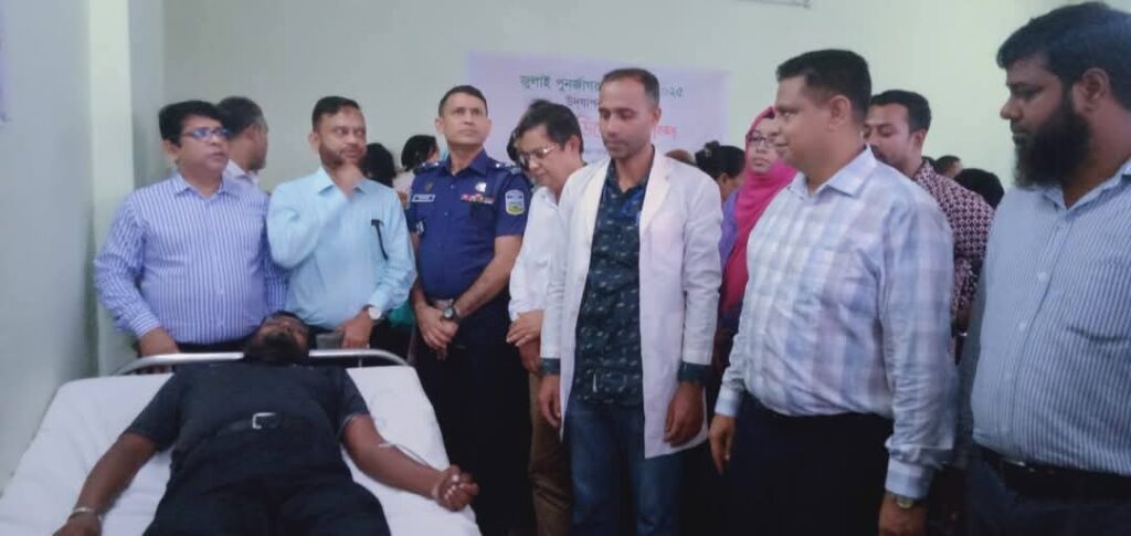 আবুল কালাম আজাদ : জুলাই পুনর্জাগরণ ২০২৫’ উদযাপন উপলক্ষে ময়মনসিংহ জেলা সিভিল সার্জন অফিসের উদ্যোগে রক্তদান কর্মসূচি ও ফ্রি মেডিক্যাল ক্যাম্পের আয়োজন করা হয়েছে। সোমবার (২৮ জুলাই ২০২৫) সকাল ১০টায় সিভিল সার্জন কার্যালয় প্রাঙ্গণে এ কর্মসূচির আনুষ্ঠানিক উদ্বোধন করেন ময়মনসিংহ জেলা প্রশাসক মুফিদুল আলম। রক্তদান কর্মসূচির উদ্বোধনী অনুষ্ঠানে বিশেষ অতিথি হিসেবে উপস্থিত ছিলেন ময়মনসিংহ জেলা পুলিশ সুপার কাজী আখতার উল আলম। ফ্রি মেডিক্যাল ক্যাম্পের উদ্বোধন করেন স্বাস্থ্য ও পরিবার কল্যাণ অধিদপ্তরের ময়মনসিংহ বিভাগের বিভাগীয় পরিচালক ডা. প্রদীপ কুমার সাহা। অনুষ্ঠানটির সার্বিক তত্ত্বাবধানে ছিলেন ময়মনসিংহের সিভিল সার্জন ডা. মোহাম্মদ ছাইফুল ইসলাম খান। এ সময় আরও উপস্থিত ছিলেন ডেপুটি সিভিল সার্জন ডা. ফয়সাল আহমেদ, সিনিয়র স্বাস্থ্য শিক্ষা কর্মকর্তা সৈয়দ জাবেদ ইকবালসহ স্বাস্থ্য বিভাগের কর্মকর্তাবৃন্দ। এ কর্মসূচিতে অংশ নিয়ে শতাধিক সাধারণ মানুষ রক্তদান করেন এবং বিনামূল্যে চিকিৎসা সেবা গ্রহণ করেন। আয়োজকরা জানান, স্বাস্থ্যসচেতনতা বৃদ্ধির লক্ষ্যে এ ধরনের কর্মসূচি নিয়মিতভাবে আয়োজন করা হবে।