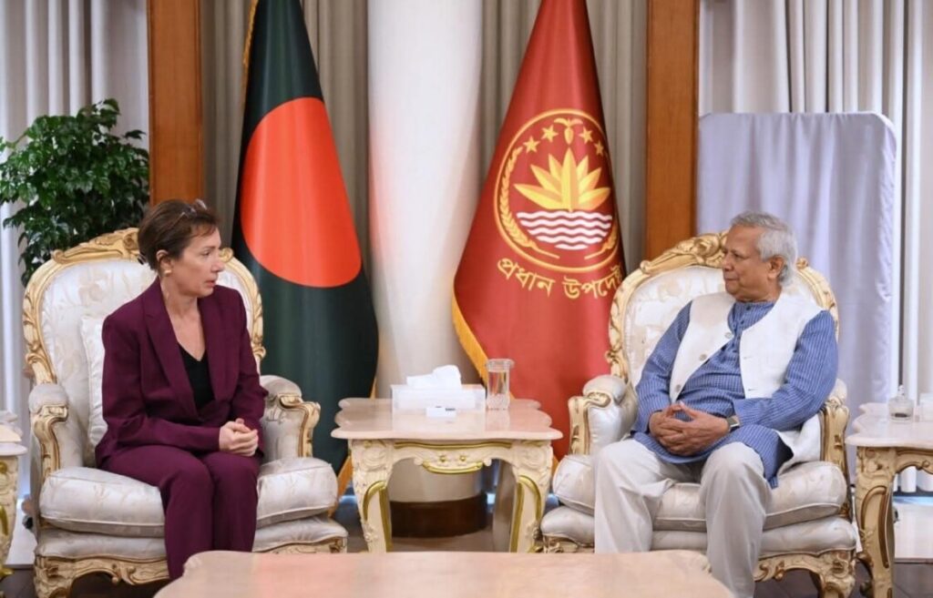 ঢাকা, জুলাই ২৮, ২০২৫ — প্রধান উপদেষ্টা অধ্যাপক মুহাম্মদ ইউনূস সোমবার সন্ত্রাসবাদ মোকাবিলায় তার সরকারের অটল অঙ্গীকার পুনর্ব্যক্ত করেন, ঘোষণা করেন যে বাংলাদেশ তাদের সীমান্তে কোন সন্ত্রাসী দলকে কাজ করতে দেবে না।”সন্ত্রাসবাদ একত্রিত করা আমাদের শীর্ষ অগ্রাধিকার। বাংলাদেশে সন্ত্রাসবাদের প্রতি আমাদের জিরো টলারেন্স আছে। প্রধান উপদেষ্টা বলেন, ‘আমাদের মাটি থেকে সন্ত্রাসীদের নির্মূল করার জন্য আমরা সর্বাত্মক চেষ্টা করব। আজ বিকেলে যমুনায় স্টেট গেস্ট হাউস-এ ইউএস চার্জে ডি’অ্যাফেয়ারস ট্রেসি অ্যান জ্যাকবসনের সঙ্গে এক বৈঠকে অধ্যাপক ইউনূস এই মন্তব্য করেন। ৪০ মিনিটের বৈঠকে বাংলাদেশ-যুক্তরাষ্ট্রের মধ্যে চলমান শুল্ক আলোচনাসহ পারস্পরিক আগ্রহের বিষয়ে আলোচনা করেন তারা। চার্জে ডি’অ্যাফেয়ার্স জ্যাকবসন বাংলাদেশের সংস্কার প্রচেষ্টা এবং এর গণতান্ত্রিক রূপান্তরের জন্য তার সরকারের সমর্থন পুনর্ব্যক্ত করেছেন, যা আগামী বছরের গোড়ার দিকে জাতীয় নির্বাচনে শেষ হবে বলে আশা করা হচ্ছে। প্রধান উপদেষ্টা ন্যাশনাল কনসেন্সস-বিল্ডিং কমিশনের কাজের বিষয়েও আপডেট শেয়ার করেছেন, যা রাজনৈতিক দলগুলিকে মূল সংস্কারের চারপাশে একত্রিত করার চেষ্টা করছে। “আমি বিশ্বাস করি কমিশন একটি চমৎকার কাজ করছে। অধ্যাপক আলী রিয়াজের নেতৃত্বে সদস্যরা কঠোর পরিশ্রম করছে,” তিনি যোগ করেন।