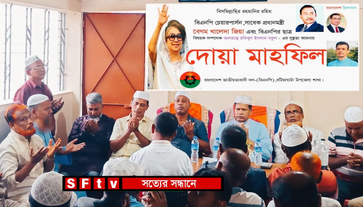 দেশনেত্রী বেগম খালেদা জিয়া ও কেন্দ্রীয় ছাত্রবিষয়নক সম্পাদক আলহাজ্ব রকিবুল ইসলাম বকুল এর আশুরোগ মুক্তি কামনায় বটিয়াঘাটা বিএনপির আয়োজনে গতকাল সোমবার বাদ আছর স্থানীয় দলীয় কার্যালয়ে এক দোয়া মাহফিল অনুষ্ঠিত হয়। উপজেলা বিএনপির আহবায়ক এজাজুর রহমান শামীম'র সভাপতিত্বে দোয়া মাহফিলে প্রধান অতিথি ছিলেন জিয়াউর রহমান পাপুল। অন্যান্যের মধ্যে উপস্থিত ছিলেন বিএনপি নেতা সুলতা মাহমুদ, আনোয়ার হোসেন, শফিক মোলঙ্গী, মোল্লা ইমরান আহমেদ, পলাশ মহালদার, লিটন হাওলাদার, আছাবুর রহমান, হুমায়ুন কবির, প্রথম শ্রেণীর মেরিন মাস্টার মোঃ মহাসিন,বার প্রাপ্তচেয়ারম্যান হুমায়ন কবির, আমিনুল ইসলাম সজীব, মোঃ রিপন, জাহাঙ্গীর, রবিউল।এছাড়াও বিএনপির অঙ্গ সহযোগী সংগঠনের নেতা-কর্মী গন উপস্থিত ছিলেন।