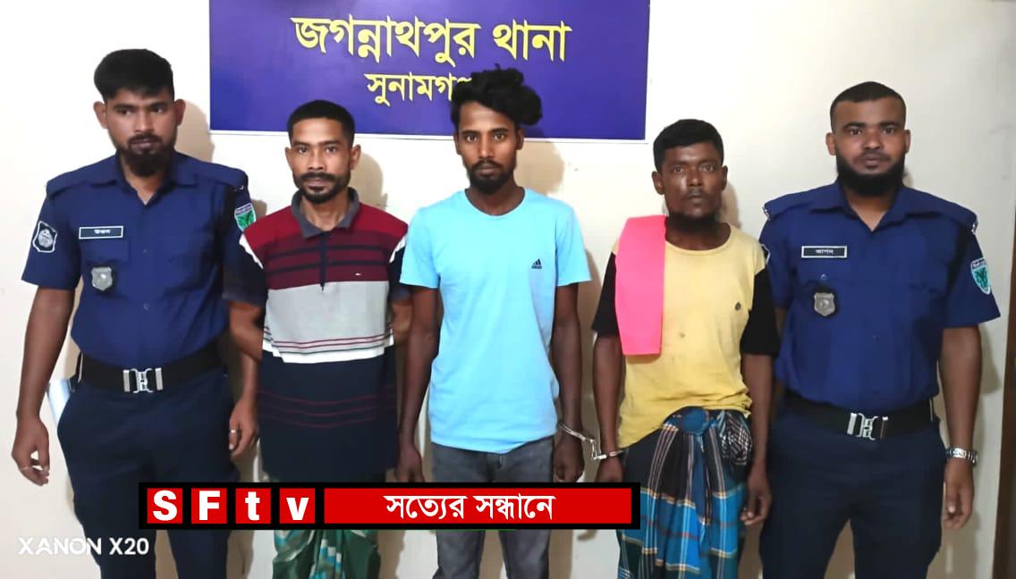 সুনামগঞ্জ জগন্নাথপুরে গ্রেপ্তারি পরোয়ানা ভুক্ত পলাতক আসামী মনির(২২) এজাহারনামীয় আসামী সরুপ (৩০) ও আক্তার (৩০) কে গ্রেফতার করেছে থানা পুলিশ। সুনামগঞ্জের জগন্নাথপুর থানার এসআই মোঃ আল আমিন এর নেতৃত্বে এসআই দিপংকর হালদার, এসআই নুর উদ্দিন আহমদ, এসআই রিফাত সিকদার, এএসআই মোঃ হুমায়ূন কবির বাহার এবং এএসআই কামাল উদ্দিন সহ একদল পুলিশ ২৮শে জুলাই দিবাগত রাতে বিশেষ অভিযান পরিচালনা করে জগন্নাথপুর উপজেলার আছকন মিয়ার ছেলে জগন্নাথপুর থানার এফআইআর নং-১৫, তারিখ- ২২ জুলাই, ২০২৫ ও জিআর নং-১৪১, তারিখ- ২২ জুলাই, ২০২৫ ইং ধারা- ৯(১)/৩০ নারী ও শিশু নির্যাতন দমন আইন ২০০০ এর এজাহারনামীয় আসামী স্বরুপ মিয়া (৩০), জগন্নাথপুর পৌর এলাকার ইছহাকপুর গ্রাম নিবাসী মৃত গৌছ মিয়ার ছেলে জগন্নাথপুর থানার, এফআইআর নং-১৮, তারিখ- ২৮ জুলাই, ২০২৫ইং, জি আর নং-১৪৪, তারিখ- ২৮ জুলাই, ২০২৫ইং ধারা- 143/341/323/ 324/ 325/326/ 307/506(2)/114/34 The Penal Code, 1860 এর এজাহারনামীয় আসামী আক্তার মিয়া (৩০) ও জগন্নাথপুর উপজেলার বাগময়না গ্রামের বর্তমানে আছিমপুর (পাইলগাঁও) গ্রাম নিবাসী মৃত মোস্তফা মিয়ার ছেলে জিআর-১০৩/২৪ (জগঃ) মামলার আদালত কর্তৃক গ্রেপ্তারি পরোয়ানা ভুক্ত পলাতক আসামী মোঃ মনির হোসেন (২২) কে গ্রেফতার করেন। গ্রেফতারকৃত আসামীদের যথাযথ পুলিশ স্কটের মাধ্যমে ২৯ শে জুলাই সুনামগঞ্জ বিজ্ঞ আদালতে প্রেরণ করেছে থানা পুলিশ। এবিষয়ের সত্যতা নিশ্চিত করেছেন জগন্নাথপুর থানার ভারপ্রাপ্ত কর্মকর্তা (ওসি) মো. মাহফুজ ইমতিয়াজ ভূঁঞা