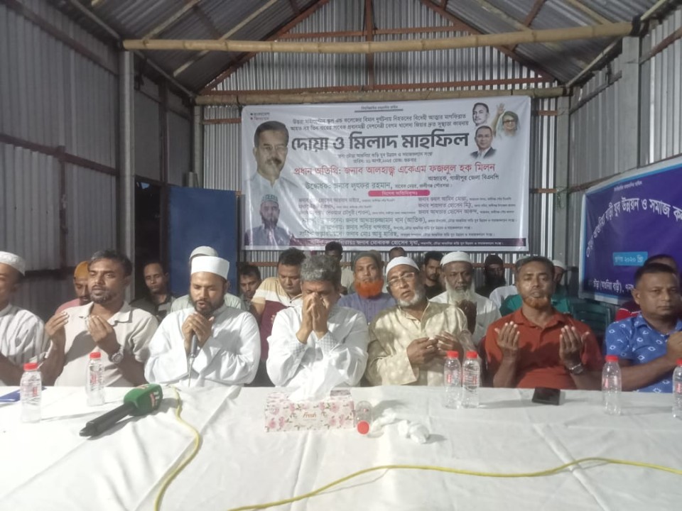 মো: মুক্তাদির হোসেন : যেখানে মৃত্যু আছে, সেখানে থাকে প্রার্থনা। যেখানে অসুস্থতা, সেখানে থাকে আশাবাদ। আর যেখানে মানবতা, সেখানে ভালোবাসা কখনো মরে না। এমনই এক মানবিক সকাল ও হৃদয়স্পর্শী বিকেল দেখা গেল গাজীপুরের কালীগঞ্জ উপজেলার চৌড়া আগুনিয়াবাড়ি গ্রামে।বিমান দুর্ঘটনায় অকালে ঝরে যাওয়া তরুণ প্রাণদের বিদেহী আত্মার মাগফিরাত কামনা এবং দীর্ঘ সময় ধরে শয্যাশায়ী থাকা গণতন্ত্রের আপসহীন নেত্রী, দেশনেত্রী বেগম খালেদা জিয়ার সুস্থতা কামনায় চৌড়া আগুনিয়াবাড়ি যুব উন্নয়ন ও সমাজকল্যাণ সংস্থা আয়োজন করে এক দোয়া ও মিলাদ মাহফিল। কিন্তু এই আয়োজন ছিল কেবল দোয়ার সীমাবদ্ধ গণ্ডিতে আটকে থাকা কোনো প্রথাগত আয়োজন নয়—এটি ছিল হৃদয়ের কান্না, সমাজের দায়বদ্ধতা আর ভালোবাসার এক বাস্তব চিত্র।