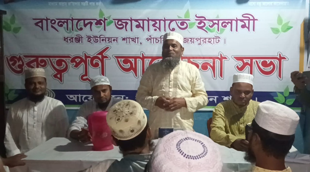 মোঃ আবু সুফিয়ান মুক্তার: জয়পুরহাট জেলার পাঁচবিবি উপজেলার ধরঞ্জী ইউনিয়ন জামায়াতে ইসলামীর উদ্যোগে এক গুরুত্বপূর্ণ মাসিক নির্বাচনী বৈঠক অনুষ্ঠিত হয়েছে। ইউনিয়ন জামায়াতে ইসলামীর কার্যালয়ে এই বৈঠক অনুষ্ঠিত হয়। বৈঠকে সভাপতিত্ব করেন ধরঞ্জী ইউনিয়ন জামায়াতের আমীর মাওলানা সাজেদুর রহমান সরকার সাজু এবং সঞ্চালনায় ছিলেন ইউনিয়ন সেক্রেটারি মোঃ মাজেদুল ইসলাম। বৈঠকে প্রধান অতিথি হিসেবে উপস্থিত ছিলেন বাংলাদেশ জামায়াতে ইসলামীর কেন্দ্রীয় মজলিসে শূরার অন্যতম সদস্য, জয়পুরহাট জেলা জামায়াতের আমীর এবং জয়পুরহাট-১ (সদর-পাঁচবিবি) আসনে আসন্ন জাতীয় সংসদ নির্বাচনে জামায়াত মনোনীত সংসদ সদস্য প্রার্থী ডা. ফজলুর রহমান সাঈদ। প্রধান অতিথির বক্তব্যে ডাঃ ফজলুর রহমান সাঈদ বলেন,এই সময় আমাদের জন্য অত্যন্ত গুরুত্বপূর্ণ। আসন্ন জাতীয় নির্বাচন আমাদের সামনে একটি বড় সুযোগ এনে দিয়েছে—ন্যায়, ইনসাফ ও ইসলামি রাজনীতিকে প্রতিষ্ঠিত করার। এজন্য প্রতিটি কর্মীকে মাঠে সক্রিয় ভূমিকা পালন করতে হবে। গণসংযোগ ও জনসম্পৃক্ততা বাড়াতে হবে। ইনশাআল্লাহ, জনগণের রায় এবার ন্যায়ের প্রতীক দড়িপাল্লার পক্ষেই আসবে। বিশেষ অতিথি হিসেবে বক্তব্য রাখেন পাঁচবিবি উপজেলা জামায়াতের আমীর ডাঃ মোঃ সুজাউল করিম, উপজেলা জামায়াতের সেক্রেটারি মোঃ আবু সুফিয়ান মুক্তার ও সহকারী সেক্রেটারী আবু রায়হান প্রমুখ! বৈঠকে পাঁচবিবি ধরঞ্জী ইউনিয়নের সকল কেন্দ্রের প্রধানগণ অংশগ্রহণ করেন। আসন্ন জাতীয় সংসদ নির্বাচনকে সামনে রেখে সাংগঠনিক কার্যক্রম আরও জোরদার করা, কর্মীদের উৎসাহিত করা এবং ইউনিয়ন পর্যায়ে কাজের গতি বৃদ্ধি সংক্রান্ত বিভিন্ন দিক-নির্দেশনা বৈঠকে তুলে ধরা হয়।