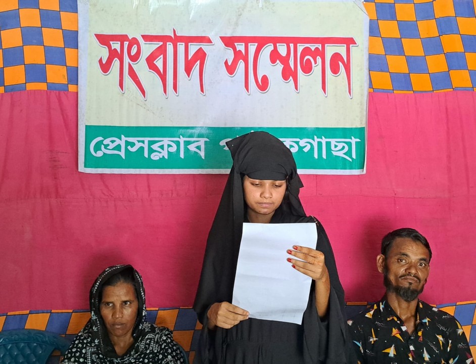 সংবাদ সম্মেলনে সাদিয়া খাতুন প্রশাসনের কাছে এ ঘটনার সুষ্ঠু তদন্তপূর্বক ন্যায়বিচারের দাবি জানান। এসময় তার পিতা মোঃ শাহীন সরদার ও মাতা সালমা বেগম উপস্থিত ছিলেন।