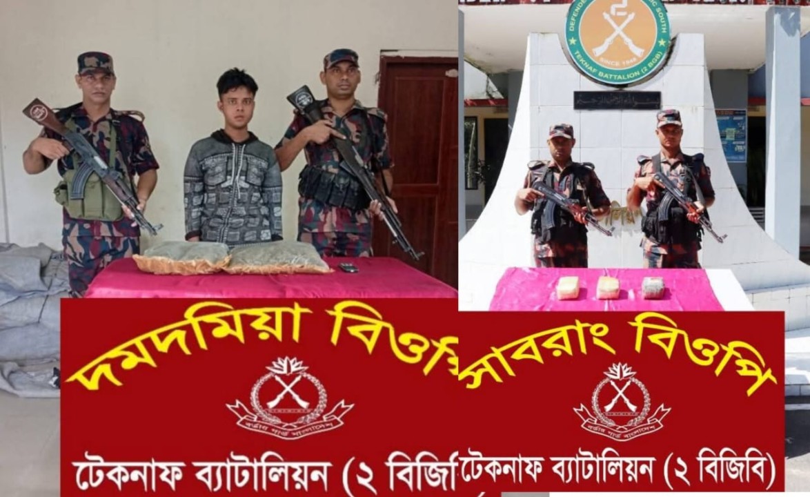 জামাল উদ্দীন, কক্সবাজার সীমান্ত উপজেলা টেকনাফ ১০ আগস্ট ২০২৫ইং সকাল সাড়ে ৬টায় টেকনাফ ২বিজিবি ব্যাটালিয়নের অধীনস্থ দমদমিয়া বিওপি’র একটি টহলদল দমদমিয়া চেকপোস্টে নিয়মিত যানবাহন তল্লাশি কার্যক্রম পরিচালনাকালে চট্টগ্রাম হতে টেকনাফগামী সৌদিয়া বাস (চট্রমেট্রো-ব-১১-১১২৪) থামিয়ে তল্লাশি করে। এসময় এক যাত্রীর আচরণ সন্দেহজনক মনে হওয়ায় তল্লাশিতে টেকনাফ বৌদ্ধঘোনার মৃত ফকির আহমদের পুত্র আব্দুল মান্নান (১৯) এর হাতে থাকা প্লাস্টিকের ব্যাগ থেকে ২কেজি গাঁজা এবং ব্যক্তিগত ব্যবহারের ১টি মোবাইল ফোন জব্দসহ তাকে আটক করা হয়।