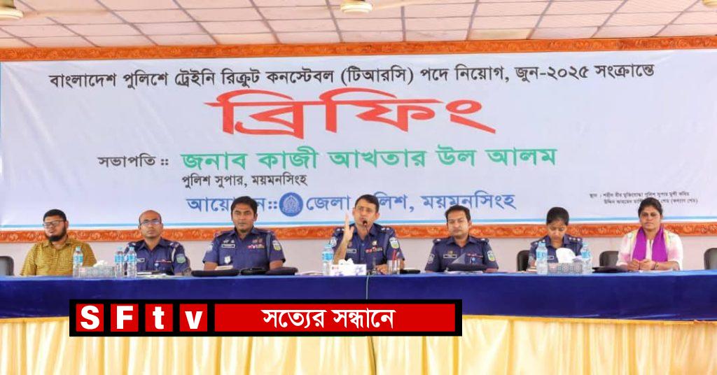 ময়মনসিংহে ট্রেইনি রিক্রুট কনস্টেবল (টিআরসি) পদে জুন-২০২৫ নিয়োগ কার্যক্রমকে ঘিরে এক ব্রিফিং অনুষ্ঠিত হয়েছে। শনিবার (১৬ আগস্ট ২০২৫) বিকাল ৩টায় জেলা পুলিশ লাইন্সের শহীদ বীর মুক্তিযোদ্ধা পুলিশ সুপার মুন্সী কবির উদ্দিন আহমেদ মাল্টিপারপাস শেডে (কল্যাণ শেড) এই ব্রিফিং অনুষ্ঠিত হয়।
