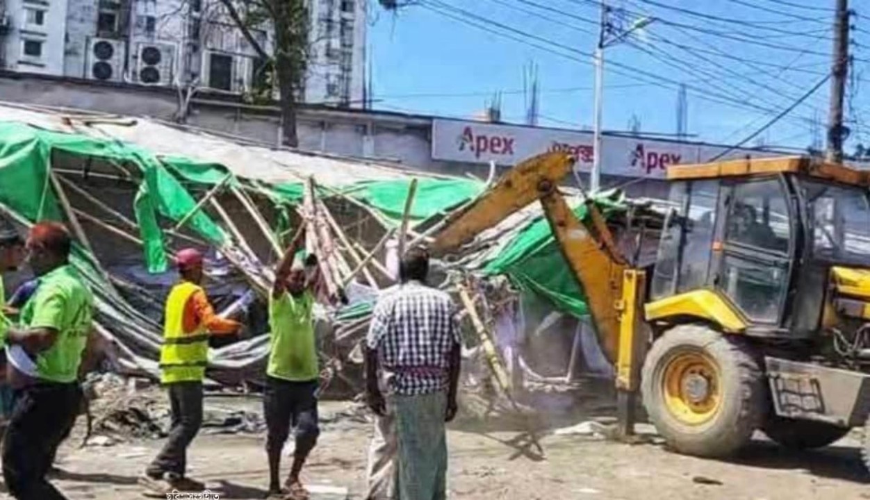 ময়মনসিংহে শতাধিক অবৈধ দোকান ও ভাসমান হকার উচ্ছেদে টাস্কফোর্স অভিযান