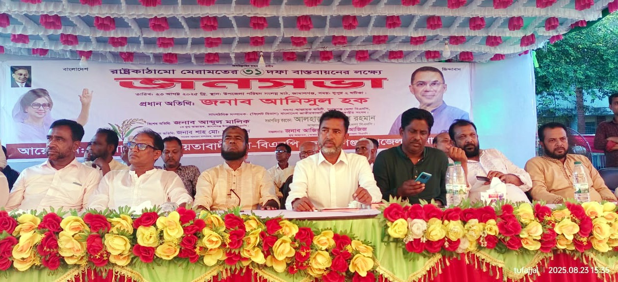 মো. শাহীন আলম : রাষ্ট্রকাঠামো মেরামতের লক্ষ্যে বিএনপি ঘোষিত ৩১ দফা বাস্তবায়নে সুনামগঞ্জের জামালগঞ্জ উপজেলায় এক বিশাল জনসভা অনুষ্ঠিত হয়েছে। শনিবার (২৩ আগস্ট) বিকেলে জামালগঞ্জ উপজেলা বিএনপির আয়োজনে উপজেলা সদর মাঠে এই জনসভা অনুষ্ঠিত হয়।