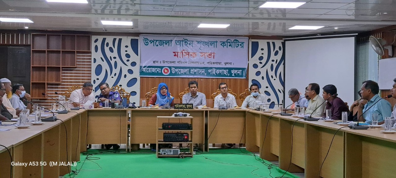 খুলনার পাইকগাছা উপজেলায় আইনশৃঙ্খলা কমিটির মাসিক সভা অনুষ্ঠিত হয়েছে। সোমবার (২৫ আগস্ট) সকালে উপজেলা পরিষদ মিলনায়তনে উপজেলা প্রশাসনের আয়োজনে এ সভা হয়। সভায় সভাপতিত্ব করেন উপজেলা নির্বাহী অফিসার (ইউএনও) মাহেরা নাজনীন। সভায় উপস্থিত ছিলেন উপজেলা স্বাস্থ্য ও পরিবার পরিকল্পনা কর্মকর্তা ডা. মোঃ মাহবুবুর রহমান, ওসি (তদন্ত) মোঃ ইদ্রিসুর রহমান, সিনিয়র উপজেলা মৎস্য কর্মকর্তা সৈকত মল্লিক, উপজেলা প্রাণিসম্পদ কর্মকর্তা ডা. পার্থ প্রতিম রায়, উপজেলা শিক্ষা কর্মকর্তা বিদ্যুৎ রঞ্জন শাহা, উপজেলা স্বাস্থ্য কমপ্লেক্সের জুনিয়র কনসালটেন্ট ডা. সুজন সরকার, মহিলা বিষয়ক কর্মকর্তা রেশমা আক্তার। এছাড়াও উপস্থিত ছিলেন, প্রেসক্লাব পাইকগাছার সভাপতি প্রকাশ ঘোষ বিধান ও সাধারণ সম্পাদক এম জালাল উদ্দীন, সমাজসেবা কর্মকর্তা অনাথ কুমার বিশ্বাস, সমবায় কর্মকর্তা হুমায়ুন কবির, পল্লী উন্নয়ন কর্মকর্তা ওয়াহিদ মুরাদ, পরিবার পরিকল্পনা কর্মকর্তা আব্দুল্লাহ আল মামুন, মাধ্যমিক শিক্ষা কর্মকর্তা শাহজাহান আলী শেখ, সহকারী কৃষি কর্মকর্তা মোঃ শাহাজাহান আলী, সিনিয়র আলিম মাদ্রাসার অধ্যক্ষ আজহার আলী, দারিদ্র্য বিমোচন কর্মকর্তা মোঃ সফিউর রহমান, কলেজ প্রভাষক আবু সাইদ, মুক্তিযোদ্ধা রনজিত সরকার, আনসার ভিডিপি কর্মকর্তা মৌলুদা খাতুন, পল্লী বিদ্যুৎ প্রতিনিধিসহ পৌরসভার প্রধান সহকারী জিয়াউর রহমান। এছাড়া ইউনিয়ন পরিষদের চেয়ারম্যান গাজী আব্দুস সালাম কেরু, ভারপ্রাপ্ত চেয়ারম্যান মোঃ জাহাঙ্গীর আলম সানা, জনপ্রতিনিধি আবুল হাসেম, আব্দুল্লাহ সরদার, বদরুল আলম, খোরশেদুজ্জামান, পিযুষ দাশ, ভারপ্রাপ্ত প্রধান শিক্ষক মোঃ আব্দুল ওয়াহাব, শিক্ষক দেবাশীষ সরদার, উপজেলা সিএ আব্দুল বারী, কৃষ্ণপদ মন্ডল সহ বিভিন্ন দপ্তরের কর্মকর্তা ও গণমাধ্যমকর্মীরা সভায় অংশ নেন।