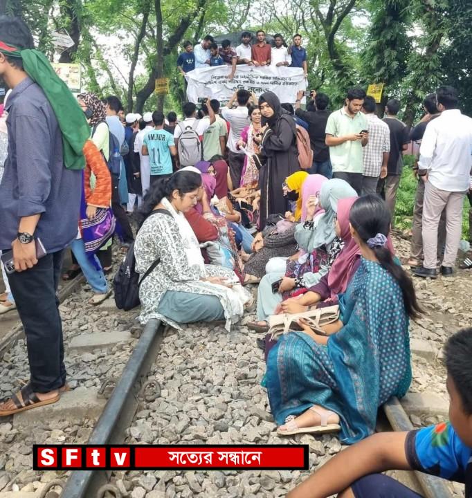কৃষিবিদ ঐক্য পরিষদ ঘোষিত তিন দফা দাবি বাস্তবায়নের দাবিতে রেলপথ অবরোধ করে বিক্ষোভ করছেন বাংলাদেশ কৃষি বিশ্ববিদ্যালয়ের শিক্ষার্থীরা। রবিবার (৩১ আগস্ট ২০২৫) সকাল সাড়ে ১১টার দিকে ময়মনসিংহ শহরের জব্বারের মোড়ে ঢাকাগামী হাওর এক্সপ্রেস ট্রেন আটকে দেয় শিক্ষার্থীরা। ফলে বন্ধ হয়ে যায় ঢাকা-ময়মনসিংহ রেলপথে ট্রেন চলাচল।