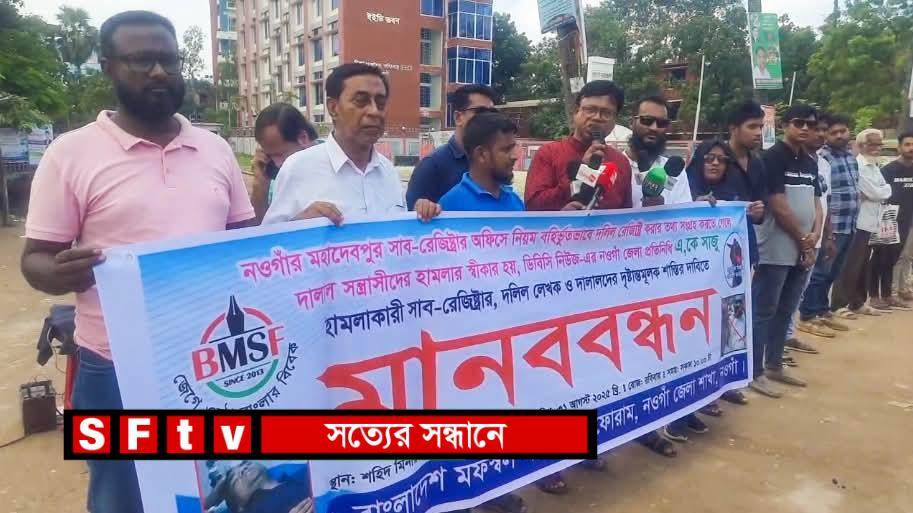 বক্তারা সাংবাদিক এ. কে. সাজুর ওপর হামলাকারী দলিল লেখক ও দালাল চক্রের সদস্যদের দ্রুত গ্রেপ্তার করে দৃষ্টান্তমূলক শাস্তির দাবি জানান। তারা বলেন, প্রতিটি সরকারি অফিস একটি নির্দিষ্ট নিয়মে পরিচালিত হয়। কিন্তু মহাদেবপুর সাব-রেজিস্ট্রি অফিসে দীর্ঘদিন ধরে রাতভর জমি রেজিস্ট্রি হয়ে আসছে, যা নিয়মবহির্ভূত। বক্তারা মহাদেবপুরের সাব-রেজিস্ট্রার মুক্তি আরার বিরুদ্ধে বিভাগীয় তদন্তেরও দাবি জানান।