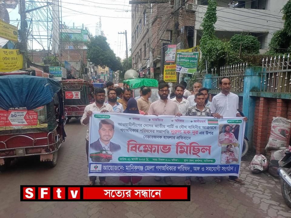 মানিকগঞ্জে নূরুল হক নূরের ওপর হামলার প্রতিবাদে বিক্ষোভ মিছিল