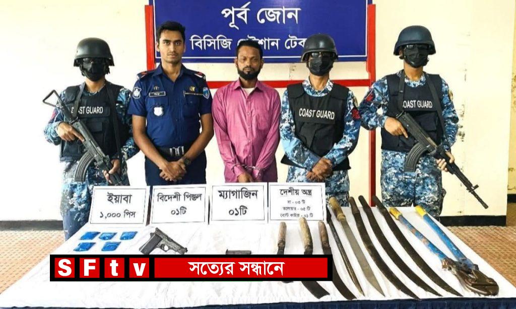 তিনি বলেন, গোপন সংবাদের ভিত্তিতে রোববার দুপুরে টেকনাফের রাজারছড়া সংলগ্ন এলাকায় যৌথ অভিযান পরিচালনা করে কোস্টগার্ড ও পুলিশ। অভিযানে তল্লাশি চালিয়ে ১ টি ৭.৬২ মিঃ মিঃ বিদেশী পিস্তল, ৯ টি দেশিয় অস্ত্র ও ১ হাজার ইয়াবাসহ একজন কুখ্যাত সন্ত্রাসী ও মাদক কারবারীকে আটক করা হয়। জব্দকৃত আলামত ও আটক ব্যক্তিকে পরবর্তী আইনানুগ ব্যবস্থা গ্রহণের কার্যক্রম প্রক্রিয়াধীন রয়েছে।