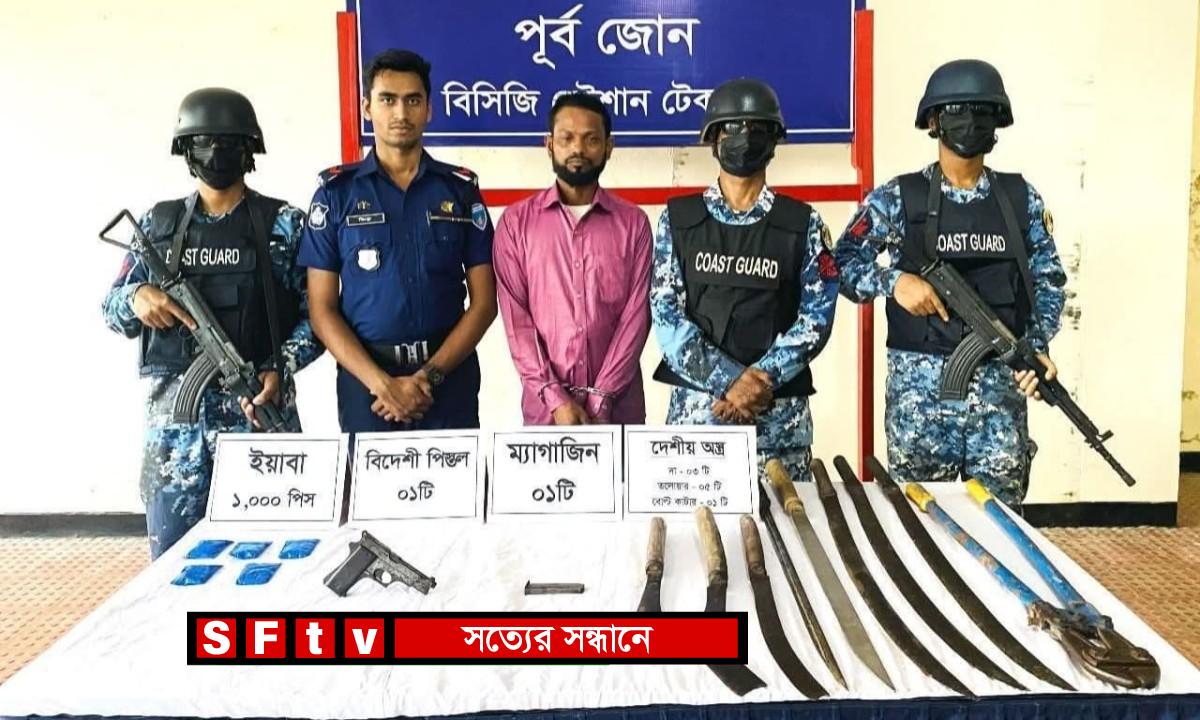 তিনি বলেন, গোপন সংবাদের ভিত্তিতে রোববার দুপুরে টেকনাফের রাজারছড়া সংলগ্ন এলাকায় যৌথ অভিযান পরিচালনা করে কোস্টগার্ড ও পুলিশ। অভিযানে তল্লাশি চালিয়ে ১ টি ৭.৬২ মিঃ মিঃ বিদেশী পিস্তল, ৯ টি দেশিয় অস্ত্র ও ১ হাজার ইয়াবাসহ একজন কুখ্যাত সন্ত্রাসী ও মাদক কারবারীকে আটক করা হয়। জব্দকৃত আলামত ও আটক ব্যক্তিকে পরবর্তী আইনানুগ ব্যবস্থা গ্রহণের কার্যক্রম প্রক্রিয়াধীন রয়েছে।