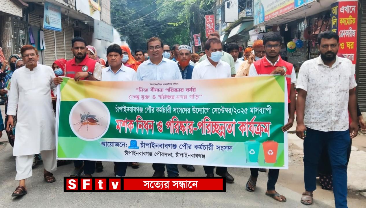 চাঁপাইনবাবগঞ্জ পৌরসভায় পৌর কর্মচারী সংসদের উদ্যোগে গতকাল ২ই সেপ্টেম্বর রোজ মঙ্গলবার সকাল ১০ ঘটিকায় পৌর চত্তর থেকে মশক নিধন ও পরিষ্কার-পরিচ্ছন্নতা কার্যক্রম বাস্তবায়নে পৌরসভার প্রধান প্রধান সড়কে র্যালি ও লিফলেট বিতরণ করেন। চাঁপাইনবাবগঞ্জ পৌরসভার এই মহৎ কার্যক্রম উদ্বোধন করেন পৌর নির্বাহী কর্মকর্তা মামুন -অর- রশীদ। উক্ত র্যালিতে "নিজ সীমানা পরিষ্কার করি,ডেঙ্গু মুক্ত ও পরিচ্ছন্ন নগর গড়ি" স্লোগানের মধ্য দিয়ে আশেপাশে সকল জনগণের হাতে লিফলেট তুলে দেন পৌর কর্মচারী সংসদ। র্যালি শেষে পৌরসভায় হলরুমে আলোচনা সভার আয়োজন করেন চাঁপাইনবাবগঞ্জ পৌরসভার পৌর কর্মচারী সংসদ। উক্ত আলোচনা সভায় সভাপতিত্ব করেন চাঁপাইনবাবগঞ্জ পৌরসভার পৌর কর্মচারী সংসদের সভাপতি মোঃ এনামুল হক। উক্ত আলোচনা সভায় প্রধান অতিথি হিসেবে ছিলেন চাঁপাইনবাবগঞ্জ পৌরসভার নির্বাহী প্রকৌশলী মোঃ তৌফিকুর ইসলাম। প্রধান অতিথি বক্তব্য দেন, চাঁপাইনবাবগঞ্জ পৌরসভার পৌর কর্মচারী সংসদের পক্ষ থেকে মাসব্যাপী পরিষ্কার- পরিচ্ছন্নতা ও বর্জ্য অপসারণ কাজ সহ ডেঙ্গু নিধন কার্যক্রম (ক্রাস প্রোগাম) শুরু হয়েছে। আমাদের সকলের দায়িত্ব পৌরসভাকে সুন্দর রাখা এবং স্বাস্থ্যকর পরিবেশ বজায় রাখা। চাঁপাইনবাবগঞ্জ পৌরবাসীর কাছে সহযোগিতা চেয়েছেন। আরোও উপস্থিতবর্গ বক্তব্য রাখেন,চাঁপাইনবাবগঞ্জ পৌরসভার পৌর কর্মচারী সংসদের সাধারণ সম্পাদক আব্দুল আজিজ খান, চাঁপাইনবাবগঞ্জ পৌরসভার পৌর নির্বাহী কর্মকর্তা মামুন- অর- রশীদ সহ উপস্থিত অনেকে বক্তব্য রাখেন