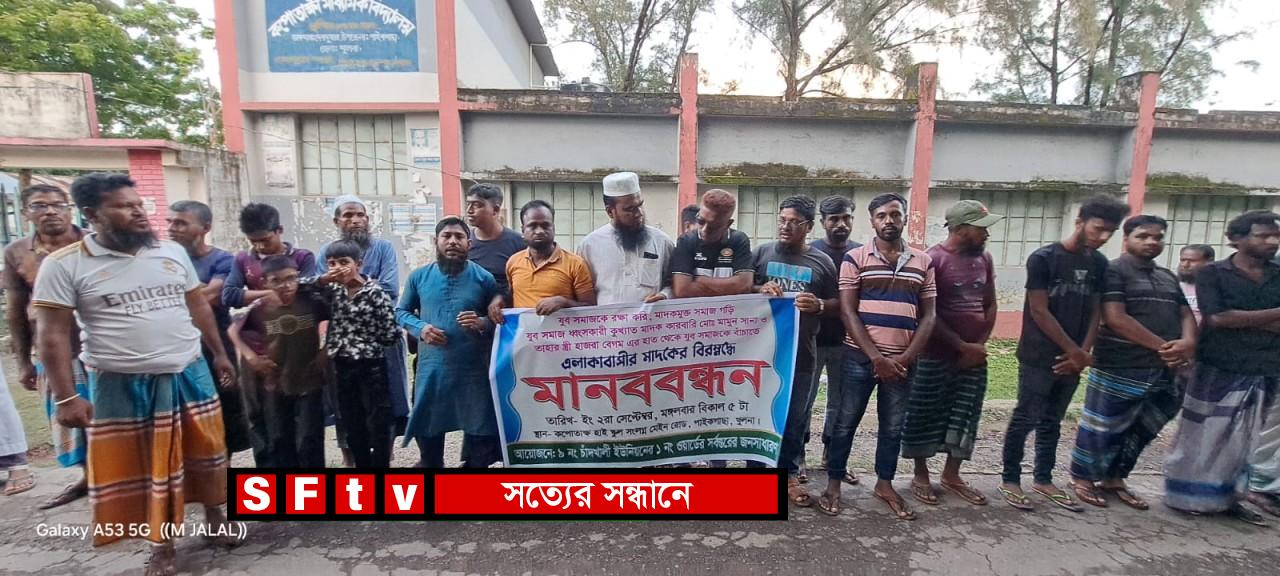 পাইকগাছায় কুখ্যাত মাদক কারবারি মোঃ মামুন সানা ও তার স্ত্রী হাজরা বেগমের হাত থেকে যুব সমাজকে রক্ষার দাবিতে এলাকাবাসীর উদ্যোগে এক মানববন্ধন অনুষ্ঠিত হয়েছে।