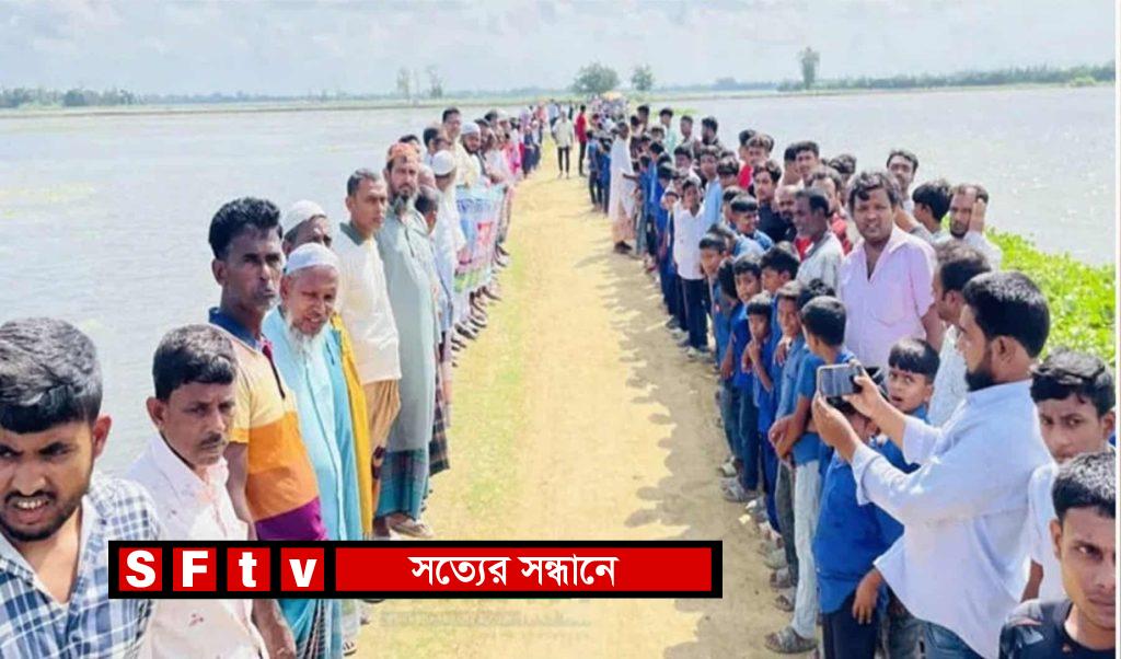এই ৫কিলোমিটার গ্রামীণ রাস্তার কিছু অংশ পাঁকা আবার কিছু অংশ ইট বিছানো আর ৩কিলোমিটার রাস্তা এখনোও লাল মাটির। যার কারণে বর্ষা মৌসুমে চলাচলের একমাত্র এই গ্রামীণ মেঠো রাস্তায় বছরের পর বছর কাঁদার সঙ্গে লুটোপুটি খেতে হচ্ছে এই অঞ্চলের বাসিন্দাদের। বিশেষ করে স্কুলগামী ও জরুরী রোগীদের পড়তে হয় চরম বেকায়দায়। এমন দুর্ভোগ থেকে রেহাই পেতে এই ৩কিলোমিটার লাল মাটির গ্রামীণ রাস্তাটি পাঁকাকরণের দাবীতে বিলের উপর রাস্তায় ঘন্টাকাল ব্যাপী মানববন্ধন অনুষ্ঠিত হয়েছে।