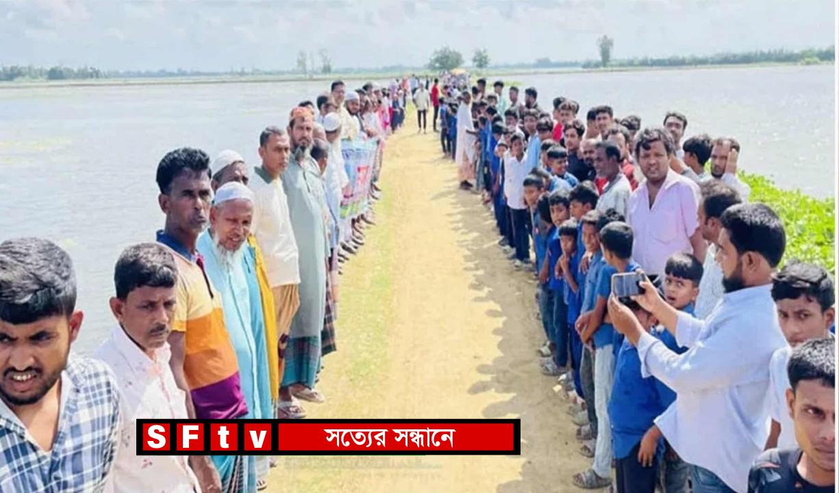 বৃহস্পতিবার এলাকাবাসীর উদ্যোগে ও উপজেলা বিএনপির ধর্ম বিষয়ক সম্পাদক রাসেল সরকারের নেতৃত্বে মানববন্ধনে বিভিন্ন শিক্ষা প্রতিষ্ঠানের শতাধিক শিক্ষার্থী, শিক্ষক, এলাকাবাসী কৃষক, ভ্যান চালকসহ সকল শ্রেণিপেশার কয়েক হাজার মানুষ মানববন্ধনে অংশগ্রহণ করেন।