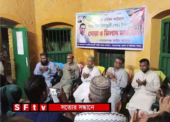 নারায়ণগঞ্জ আইন কলেজ , ২০২৫ ইং ৬ শনিবার মাগরিবের নামাজের পর দীর্ঘ ১৭ বছর পর এই প্রথম নারায়ণগঞ্জ আইন কলেজে ঈদে মিলাদুন্নবী পালন করা হয়েছে।