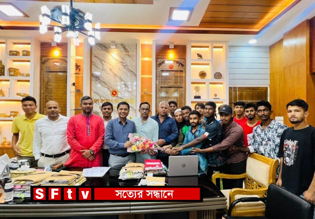 রাঙামাটি জেলা ক্রীড়া সংস্থার এ্যাডহক কমিটির প্রথম সভা শেষে বৈষম্য বিরোধী ছাত্র আন্দোলনের অন্যতম অংশিজন রাঙামাটি বিজ্ঞান ও প্রযুক্তি বিশ্ববিদ্যালয়ের ছাত্র রাকিব হাসানের নেতৃত্বে এ্যাডহক কমিটির সভাপতি মোহাম্মদ হাবিব উল্লাহ (মারুফ) এর হাতে ফুল দিয়ে জেলার খেলোয়াড়দের পক্ষ থেকে রাঙামাটি জেলা ক্রীড়া সংস্থার নতুন এ্যাডহক কমিটিকে অভিনন্দন জানান