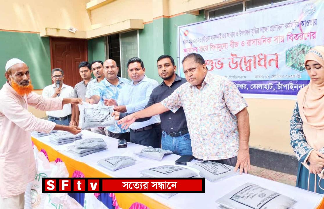 চাঁপাইনবাবগঞ্জের ভোলাহাটে বিনামূল্যে মাসকালাই বীজ ও রাসায়নিক সার বিতরণ