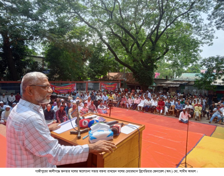 মোঃ মুক্তাদির হোসেন : সৎ মানুষদের রাজনীতিতে আসতেই হবে। ৫৪ বছর ভালো মানুষেরা রাজনীতিতে আসেনি বলেই দুর্বৃত্তরা দেশকে নিয়ন্ত্রণ করে দুঃশাসন প্রতিষ্ঠা করেছে। ভালো মানুষের দল, জনতার দল। দেশের মানুষের কথা চিন্তা করে আমরা দল গঠন করেছি। আমরা দেশের পরিবর্তন করতে চাই। দেশের জনসাধারণ যাতে ভালো থাকে, কিভাবে ভালো রাখা যায়, সেই লক্ষ্যে কাজ করবে জনতার দল। গাজীপুরের কালীগঞ্জে জনতার দলের আয়োজনে আলোচনা সভায় জনতার দলের চেয়ারম্যান ব্রিগেডিয়ার জেনারেল (অব.) মো. শামীম কামাল চৌধুরী এ সব বলেন।
