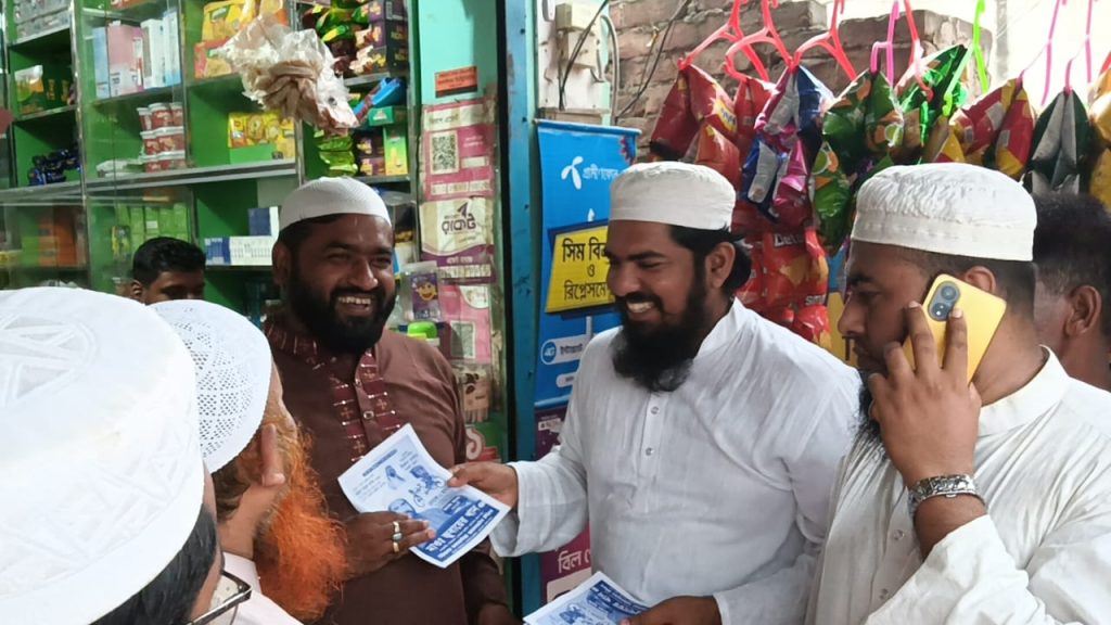 এস এম সাইফুল ইসলাম : বাংলাদেশ খেলাফত মজলিস চুয়াডাঙ্গা জেলা শাখার সেক্রেটারি ও চুয়াডাঙ্গা-২ আসনের সংসদীয় প্রার্থী মাওলানা জুবায়ের খান বলেছেন, চুয়াডাঙ্গার সর্বস্তরের জনগণের কাছে আল্লামা মামুনুল হকের সালাম পৌঁছাতে এসেছি। দলমত নির্বিশেষে সবাই আল্লামা মামুনুল হকের নাম শোনামাত্রই আন্তরিকতার সঙ্গে আমাদের কাছে টেনে নিচ্ছেন। এখন পর্যন্ত সর্বসাধারণের ব্যাপক সাড়া পেয়েছি, আলহামদুলিল্লাহ। তিনি বলেন, বাংলাদেশ খেলাফত মজলিস চুয়াডাঙ্গা-২ আসনে নির্বাচিত হলে কৃষকদের স্বার্থরক্ষাকে সর্বোচ্চ অগ্রাধিকার দেবে। চুয়াডাঙ্গা কৃষি প্রধান জেলা। কৃষকদের পাশে থেকে ন্যায্যমূল্য নিশ্চিত ও তাদের অধিকার রক্ষায় আমরা কাজ করব ইনশাআল্লাহ। বৃহস্পতিবার (১১ সেপ্টেম্বর) বিকেলে দামুড়হুদা উপজেলার কার্পাসডাঙ্গা ইউনিয়ন, দর্শনা থানা ও কুড়লগাছি এলাকায় রিকশা প্রতীকের প্রচারণায় গণসংযোগকালে তিনি এসব কথা বলেন। জুবায়ের খান আরও বলেন, তরুণ সমাজকে মাদকের মতো অভিশাপ থেকে রক্ষা করতে হবে। একই সঙ্গে দুর্নীতি দমন করে ন্যায়ভিত্তিক শাসন প্রতিষ্ঠা করা হবে। তিনি প্রতিশ্রুতি দেন, শিক্ষাব্যবস্থার উন্নয়ন, বেকার সমস্যা সমাধান এবং সাধারণ মানুষের অধিকার প্রতিষ্ঠার জন্য খেলাফত মজলিস কাজ করবে।এ সময় স্থানীয় নেতাকর্মীরা গণসংযোগে অংশ নেন এবং ভোটারদের কাছে দলের নীতিমালা ও অঙ্গীকার তুলে ধরেন।গণসংযোগে উপস্থিত ছিলেন দলটির চুয়াডাঙ্গা জেলা শাখার সাংগঠনিক সম্পাদক ও চুয়াডাঙ্গা ১ আসনের সংসদীয় প্রার্থী মাওলানা শফিকুল ইসলাম, সহ-প্রচার সম্পাদক মাওলানা সাইফুল ইসলাম, কার্পাসডাঙ্গা ইউনিয়ন সভাপতি হাফেজ জাহিদুল ইসলাম, সাধারণ সম্পাদক মাওলানা আব্দুল হালিম, মাওলানা তরিকুল ইসলাম, মাওলানা শেখ সাদী ও মাওলানা আখতারুজ্জামান ফারুকী প্রমুখ।