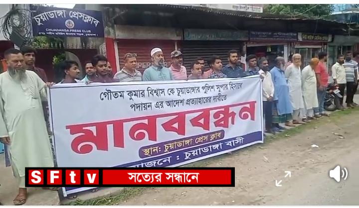 আওয়ামী লীগের প্রত্যক্ষ সহযোগী বিতর্কিত পুলিশ সুপার গৌতম কুমার বিশ্বাসের চুয়াডাঙ্গায় পদায়ন প্রত্যাহারের দাবীতে মানববন্ধন