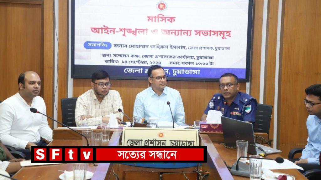 চুয়াডাঙ্গা জেলা প্রশাসকের সম্মেলন কক্ষে জেলা আইন-শৃঙ্খলা কমিটির সভা অনুষ্ঠিত হয়েছে। আজ রবিবার (১৪ সেপ্টেম্বর ২০২৫) সকাল ১০টা ৩০ মিনিটে এ সভা শুরু হয়।