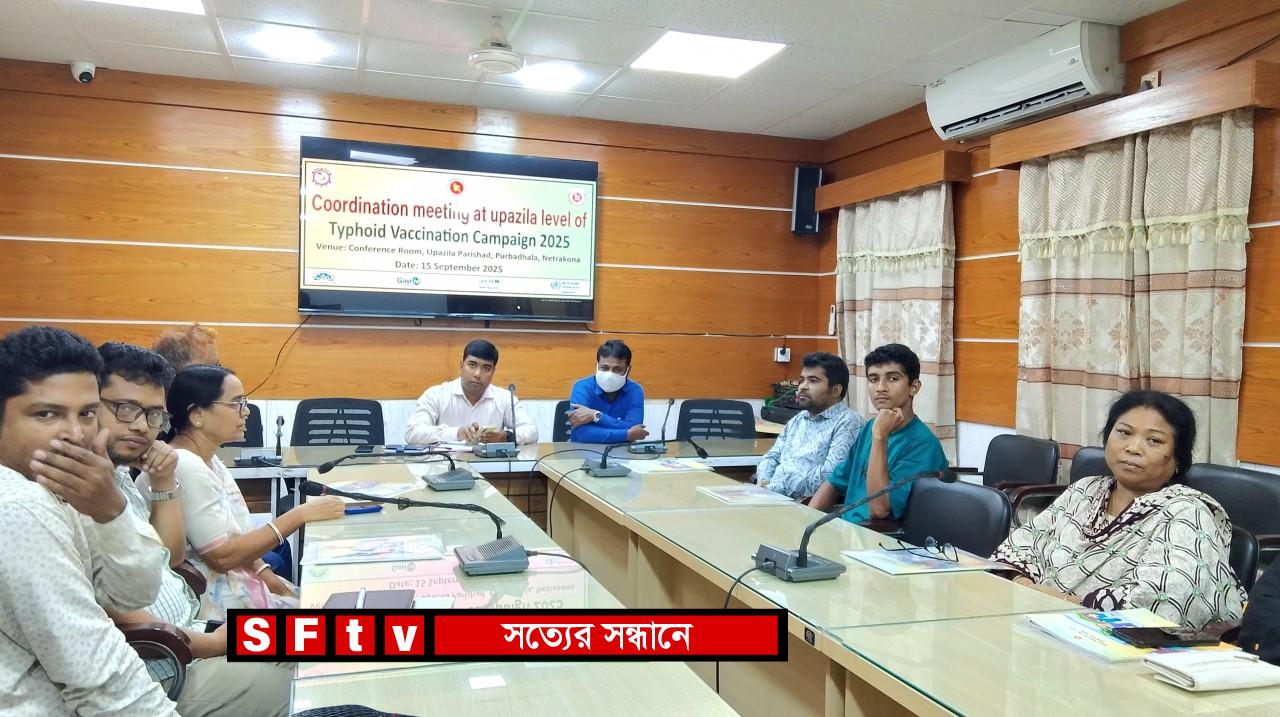 নেত্রকোনার পূর্বধলা উপজেলা স্বাস্থ্য কমপ্লেক্সের উদ্যোগে টাইফয়েড টিকাদান কর্মসূচি-২০২৫ উপলক্ষে উপজেলা সমন্বয় সভা অনুষ্ঠিত হয়েছে।