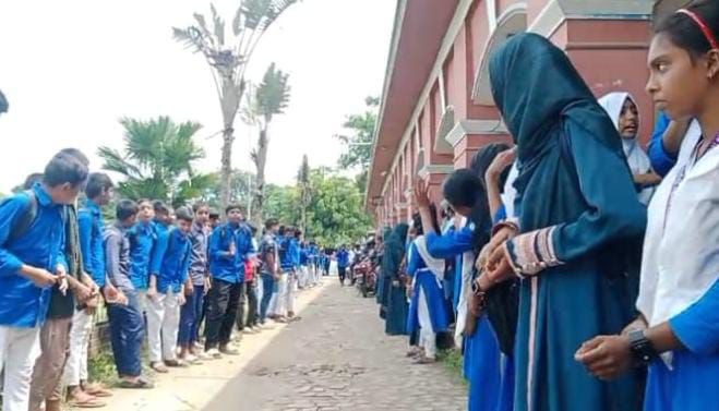 তৌহিদ,মাগুরা : মাগুরার শ্রীপুর উপজেলার নাকোল রাইচরণ মাধ্যমিক বিদ্যালয়ে প্রধান শিক্ষক শেখ আব্দুল মান্নানকে দায়িত্বে বহাল রাখার দাবিতে শিক্ষার্থীরা মানববন্ধন করেছে। আজ মঙ্গলবার সকাল সাড়ে ১০টায় বিদ্যালয় প্রাঙ্গণে এ কর্মসূচি অনুষ্ঠিত হয়।শিক্ষার্থীরা জানান, প্রধান শিক্ষক শেখ আব্দুল মান্নানকে সাময়িক বরখাস্ত করা হলেও আদালতের রায়ে তিনি বৈধভাবে দায়িত্বপ্রাপ্ত। কিন্তু বিদ্যালয়ের ভারপ্রাপ্ত প্রধান শিক্ষক মনির হোসেন রোমান বিষয়টি নিয়ে বাধাগ্রস্ত করছেন।প্রধান শিক্ষক শেখ আব্দুল মান্নান বলেন, “আমাকে নিয়ম বহির্ভূতভাবে সাময়িক বরখাস্ত করা হয়েছিলো। এ বিষয়ে হাইকোর্টে রিট করলে আদালত আমার পক্ষে রায় দেন।”মানববন্ধনে শিক্ষার্থীরা শুধু প্রধান শিক্ষককে পুনর্বহাল নয়, সেই সাথে ভারপ্রাপ্ত প্রধান শিক্ষক মুনীর হোসেন রোমান এর পদত্যাগও দাবি করেন।