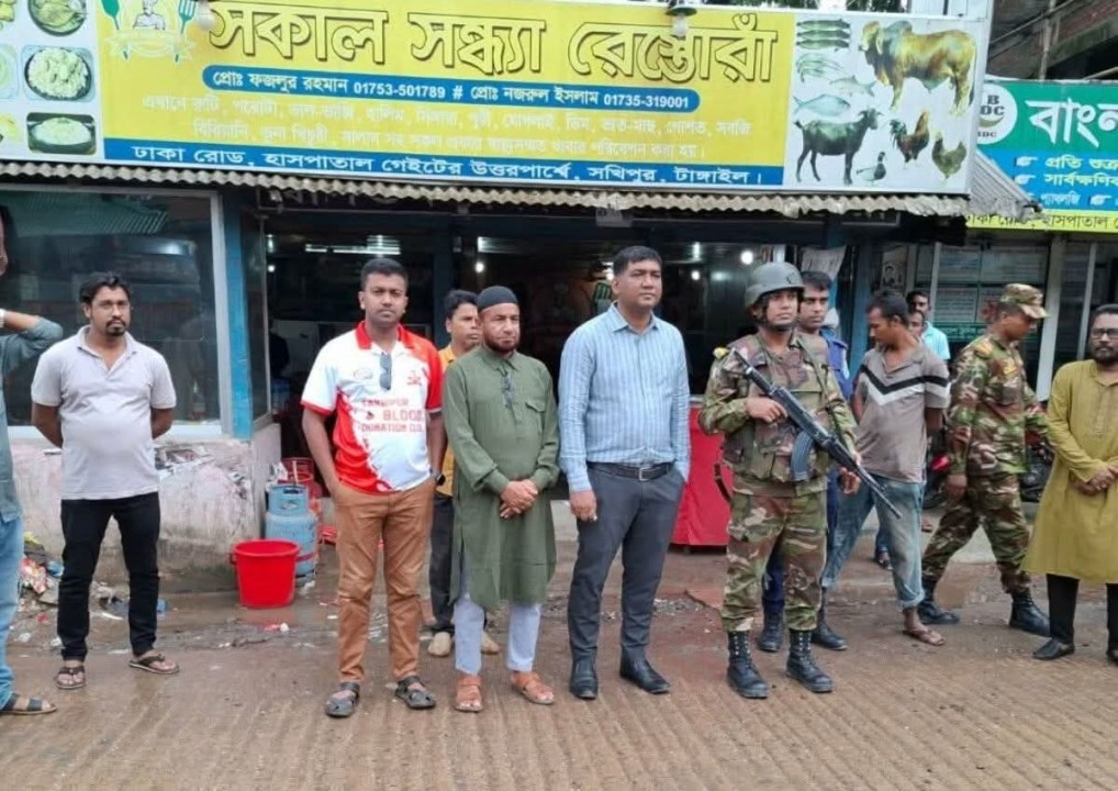 খান আহম্মেদ হৃদয় পাশা,: টাঙ্গাইলের সখীপুর উপজেলায় ভ্রাম্যমাণ আদালতের অভিযানে মঙ্গলবার ছয়টি প্রতিষ্ঠানকে মোট ৫৫ হাজার টাকা জরিমানা করা হয়েছে। অভিযানে ইভা ডায়াগনস্টিক সেন্টারকে ১২ হাজার টাকা, বাংলাদেশ ডায়াগনস্টিক সেন্টারকে ৫ হাজার টাকা, নিউ শুভেচ্ছা ক্লিনিককে ৪ হাজার টাকা, আল আমিন ডায়াগনস্টিক সেন্টারকে ১০ হাজার টাকা, ভূইয়া মেডিসিন কর্ণারকে ৪ হাজার টাকা এবং সকাল-সন্ধ্যা রেস্তোরাঁকে ২০ হাজার টাকা জরিমানা করা হয়। প্রশাসনের পক্ষ থেকে জানানো হয়, স্বাস্থ্যবিধি লঙ্ঘন, অনুমোদনবিহীন কার্যক্রম ও বিভিন্ন অনিয়মের কারণে এ জরিমানা করা হয়েছে। এ ধরনের অভিযান চলমান থাকবে বলেও সংশ্লিষ্টরা জানান।