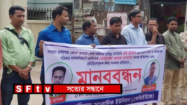 সংগঠনের পক্ষ থেকে কুমিল্লার আমার দেশ পত্রিকার জেলা প্রতিনিধি এম হাসান এবং লালমনিরহাটের আজকের পত্রিকার জেলা প্রতিনিধি খোরশেদ আলম সাগরের নামে দায়ের হওয়া মিথ্যা ও হয়রানিমূলক মামলার অবিলম্বে প্রত্যাহারের দাবি জানানো হয়। মানববন্ধনে জেলা উপজেলা পর্যায়ের সাংবাদিক সুশীল সমাজের প্রতিনিধি এবং স্থানীয় নাগরিকরা অংশগ্রহণ করেন।