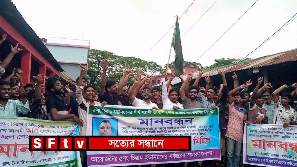 মানববন্ধনে বক্তারা বলেন ৫ নং চিরাম ইউনিয়ন বিএনপির সাধারণ সম্পাদক শীর্ষ সন্ত্রাসী উজ্জ্বল শেখ আওয়ামী ফ্যাসিস্টদের পূনর্বাসন করছে।উজ্জ্বল শেখ এলাকায় মাদক,জুয়া,নারী কেলেংকারী সহ এমন কোন কাজ নেই যে সে করেনা।সে এলাকায় জুয়ার বোর্ড বসায়।তাই আমরা এলাকাবাসীরা সবাই এই সন্ত্রাসী উজ্জ্বল শেখের হাত থেকে মুক্তির দাবী আজ একত্রিত হয়েছি।আমরা এলাকাবাসী উজ্জ্বল শেখকে বিএনপির কমিটি থেকে বহিষ্কার চাই।