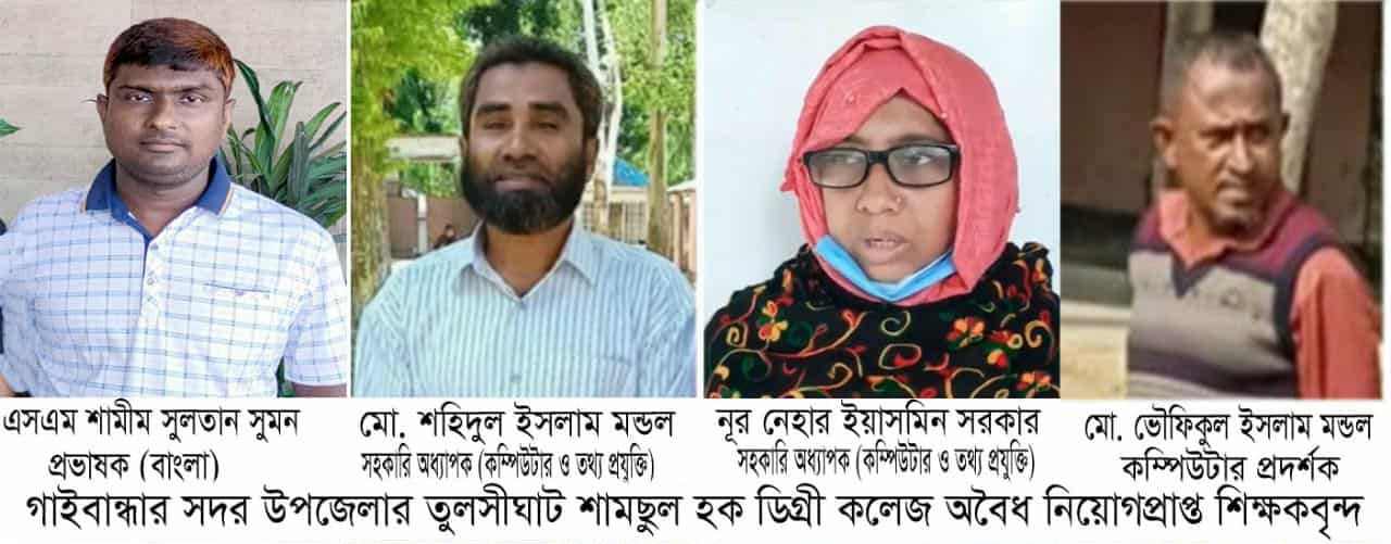 গাইবান্ধা সদর উপজেলার তুলসীঘাট শামছুল হক ডিগ্রি কলেজে নানা অনিয়ম-দুর্নীতি, ব্যক্তিগত একাউন্টে অর্থ লেনদেন ও অবৈধ নিয়োগ প্রমাণিত হওয়ায় কলেজ কর্তৃপক্ষকে শোকজ নোটিশ দিয়েছে মাধ্যমিক ও উচ্চশিক্ষা অধিদপ্তরের (মাউশি) পরিদর্শন ও নিরীক্ষা শাখা।