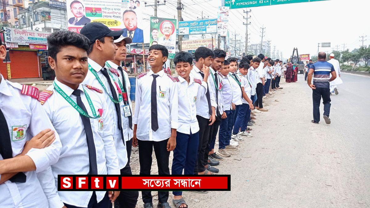 শ্রীপুরে পৃথক স্থানে ফুটওভার ব্রিজ নির্মাণের দাবিতে মানববন্ধন