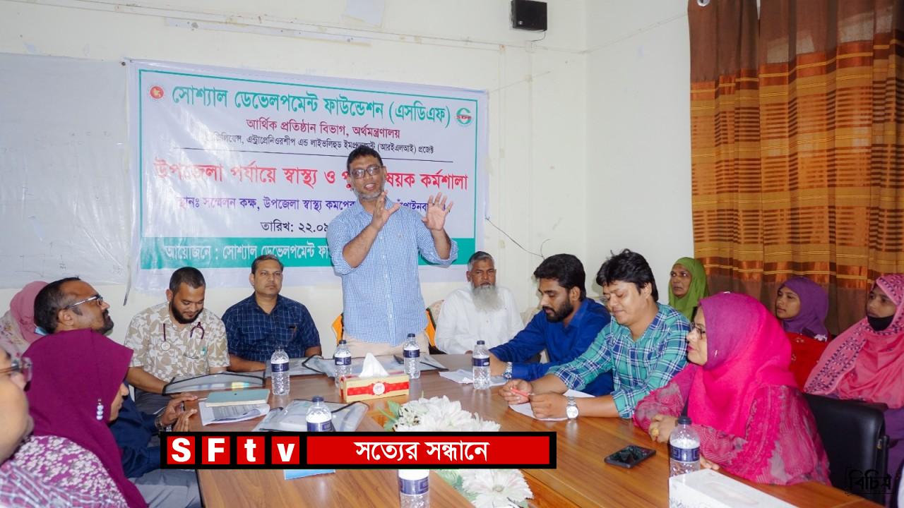 মাহিদুল ইসলাম ফরহাদ : চাঁপাইনবাবগঞ্জের শিবগঞ্জে স্বাস্থ্য ও পুষ্টি বিষয়ক স্টেকহোল্ডার কর্মশালা অনুষ্ঠিত হয়েছে। সোমবার দুুপুরে শিবগঞ্জ উপজেলা স্বাস্থ্য কমপ্লেক্সের সম্মেলন কক্ষে সোশ্যাল ডেভেলপমেন্ট ফাউন্ডেশন (এসডিএফ)- এর রেজিলিয়েন্স, এন্ট্রাপ্রেনিওরশীপ এন্ড লাইভ্লিহুড ইমেপ্রুভমেন্ট (আরইএলআই) প্রকল্পের আওতায় এই কর্মশালার আয়োজন করা হয়। কর্মশালায় প্রধান অতিথি হিসেবে উপস্থিত ছিলেন শিবগঞ্জ উপজেলার উপজেলা স্বাস্থ্য ও পরিবার পরিকল্পনা কর্মকর্তা ডা. মোঃ কামাল উদ্দিন। এছাড়াও উপস্থিত ছিলেন শিবগঞ্জ উপজেলার বিভিন্ন বিভাগের চিকিৎসকবৃন্দ, উপজেলা স্বাস্থ্য কমপ্লেক্স এবং বিভিন্ন কমিউনিটি ক্লিনিকের প্রতিনিধিগণ। এসডিএফ এর পক্ষ থেকে উপস্থিত ছিলেন জেলা কর্মকর্তাসহ শিবগঞ্জ উপজেলার ২টি ক্লাস্টারের ক্লাস্টার অফিসার ও ক্লাস্টার স্বাস্থ্য ও পুষ্টি ফ্যাসিলিটেটর এবং ২ জন গ্রাম সংগঠনের স্বাস্থ্য ও পুষ্টি সহায়তা কমিটির আহ্বায়ক। কর্মশালার শুরুতেই এসডিএফ এর জেলা কর্মকর্তা (জীবিকায়ন) বলেন, ‘আরইএলআই’ প্রজেক্ট বাংলাদেশ সরকারের অর্থ মন্ত্রণালয়ের আর্থিক প্রতিষ্ঠান বিভাগের একটি প্রকল্প যা এসডিএফ কর্তৃক বাস্তবায়িত হচ্ছে। তিনি আরও ব্যক্ত করেন যে, এই প্রকল্পের মাধ্যমে দরিদ্রতা বিমোচন, প্রশিক্ষণের মাধ্যমে সক্ষমতা বৃদ্ধি ও কর্মসংস্থান সৃজন, আর্থিক সহায়তার মাধ্যমে অতিদরিদ্র ও দরিদ্র জনগোষ্ঠীতে আয়বর্ধনমূলক কর্মকান্ডে সম্পৃক্তকরণ, খাদ্য নিরাপত্তা নিশ্চিতকরণে সহায়তা, গ্রামে স্থায়ী ও টেকসই সংগঠন তৈরি, সুবিধাবঞ্চিত ও সহায়সম্বলহীনদের জন্য এককালীন অনুদান প্রদান, গ্রামীণ অবকাঠামো নির্মাণ, বেকার যুবদের কর্মসংস্থান, জীবিকা উন্নয়ন, স্বাস্থ্য ও পুষ্টি সহায়তা প্রদান চলমান রয়েছে। এসডিএফ এর স্বাস্থ্য ও পুষ্টি বিষয়ক কার্যক্রম সম্পর্কে বিস্তারিত উপস্থাপনায় এসডিএফ চাঁপাইনবাবগঞ্জের জেলা স্বাস্থ্য ও পুষ্টি কর্মকর্তা ডা. মোঃ ইসমাঈল জানান, চাঁপাইনবাবগঞ্জ জেলার শিবগঞ্জ উপজেলার ৫০টি গ্রাম সমিতির দরিদ্র ও অতি দরিদ্র সদস্যদের মধ্যে এসডিএফ এর পক্ষ থেকে ৫৮ টি বিনামূল্যে হেলথ ক্যাম্প পরিচালনা করা হয়েছে যেখানে মোট ২০৬৯ জনকে প্রাথমিক চিকিৎসা ও পরামর্শ দেয়া হয়েছে এবং ৮৯ জনকে উন্নত চিকিৎসার জন্য রেফার করা হয়েছে। ৩২১ জন গর্ভবতী মাকে থেকে মোট ৩০৮১৬০০ টাকা মাতৃত্বকালীন ভাতা প্রদান করা হয়েছে। সন্তান প্রসবে ঝুঁকি রয়েছে এমন ২৪ জনকে ১০,০০০ টাকা করে ২৪০,০০০ টাকা প্রদান করা হয়েছে। শীতকালীন সবজি বীজ ৯৩৭৮ প্যাকেট এবং গ্রীষ্মকালীন সবজি বীজ ৭৪৮৬ প্যাকেট বিতরণ করা হয়েছে। আয়রণ, ভিটামিন, ক্যালসিয়াম, জিংক ট্যাবলেট, স্যালাইন ৩৪০০০-৫৯৫০০ পিস বিত