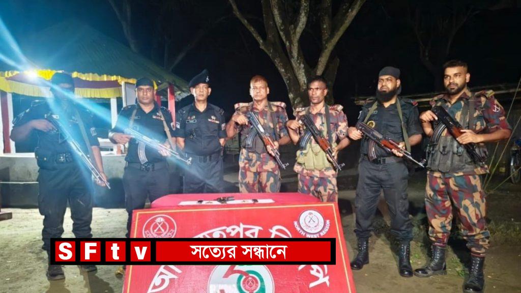 চাঁপাইনবাবগঞ্জের আজমতপুর সীমান্তে যৌথ অভিযানে ০১টি বিদেশী পিস্তল, ০৬ রাউন্ড গুলি এবং ০২টি ম্যাগাজিন উদ্ধার করেছে I