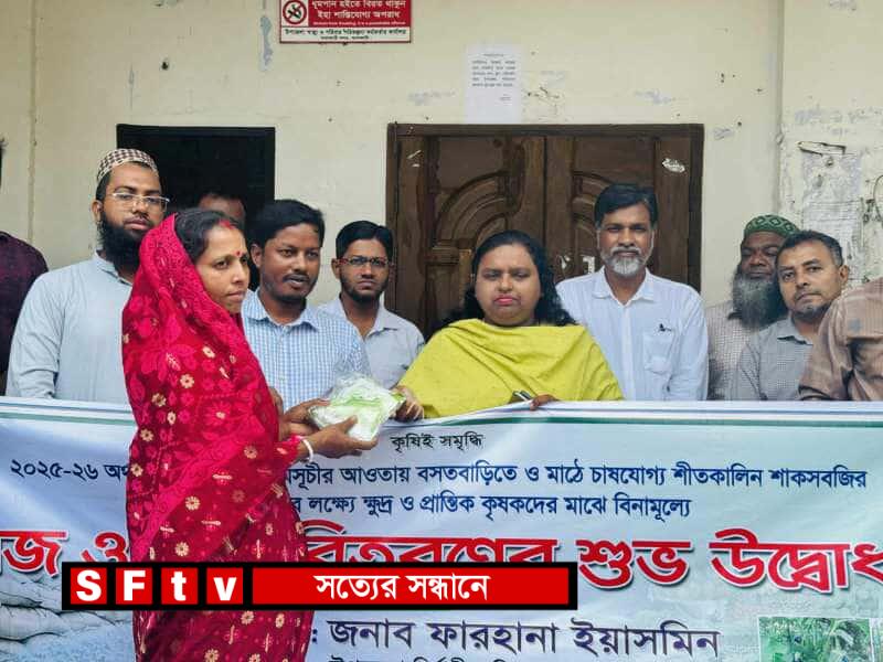 আগাম শীতকালীন শাকসবজির উৎপাদন বৃদ্ধির লক্ষ্যে ঝালকাঠি সদরে কৃষি প্রণোদনা কর্মসূচির আওতায় কৃষকদের মাঝে সবজির বীজ ও সার বিতরণ করা হয়েছে। আজ সোমবার সকালে উপজেলা পরিষদ চত্বরে আনুষ্ঠানিকভাবে এ কর্মসূচির উদ্বোধন করেন উপজেলা নির্বাহী কর্মকর্তা (ইউএনও) ফারহানা ইয়াসমিন। অনুষ্ঠানে সভাপতিত্ব করেন উপজেলা কৃষি কর্মকর্তা আলী আহম্মদ। ২০২৫-২৬ অর্থবছরের এ কর্মসূচির আওতায় বসতবাড়িতে চাষযোগ্য ৩৭৫ জন কৃষক সাত ধরনের সবজির বীজ পেয়েছেন। মাঠ পর্যায়ে চাষযোগ্য আরও ৬৩৫ জন কৃষক এ সুবিধার আওতায় এসেছেন। তাঁদের মধ্যে ১১০ জনকে লাউ, ১৭৫ জনকে মিষ্টিকুমড়া, ১৭৫ জনকে বেগুন ও ১৭৫ জনকে শসার বীজ দেওয়া হয়েছে। পাশাপাশি প্রত্যেক কৃষককে দেওয়া হয়েছে ১০ কেজি ডিএপি ও ১০ কেজি এমওপি সার। প্রধান অতিথির বক্তব্যে ইউএনও ফারহানা ইয়াসমিন বলেন, “কৃষি প্রণোদনা কর্মসূচি সরকারের বিশেষ উদ্যোগ। আগাম শীতকালীন শাকসবজির উৎপাদন বাড়াতে কৃষকদের বিনা মূল্যে এ বীজ ও সার দেওয়া হচ্ছে। কৃষকেরা যদি যত্নসহকারে চাষাবাদ করেন, তবে কৃষি আরও সমৃদ্ধ হবে। ঝালকাঠি সদরের কৃষিও হবে আরও গতিশীল ও উন্নত। সভাপতির বক্তব্যে উপজেলা কৃষি কর্মকর্তা আলী আহম্মদ বলেন, “সরকার নিয়মিত কৃষকদের সহায়তায় প্রণোদনা দিচ্ছে। আগাম শীতকালীন সবজি চাষে এই বীজ ও সার গুরুত্বপূর্ণ ভূমিকা রাখবে। আমরা চাই, কৃষকেরা এই সুবিধা কাজে লাগিয়ে অধিক ফলন অর্জন করুন। এতে কৃষকের আয় যেমন বাড়বে, তেমনি বাজারে সবজির সরবরাহও বৃদ্ধি পাবে। ফলে ভোক্তারা ন্যায্যমূল্যে সবজি পাবেন। কৃষি বিভাগ সবসময় মাঠপর্যায়ে কৃষকদের পাশে থাকবে। অনুষ্ঠানে কৃষি বিভাগের কর্মকর্তা ছাড়াও বিভিন্ন এলাকার শতাধিক কৃষক উপস্থিত ছিলেন।