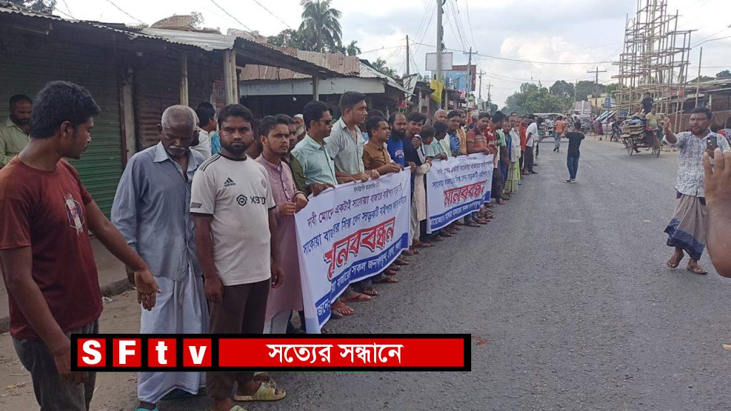 বাইপাস সড়ক নির্মাণের দাবিতে ব্যবসায়ীদের মানববন্ধন ও বিক্ষোভ মিছিল