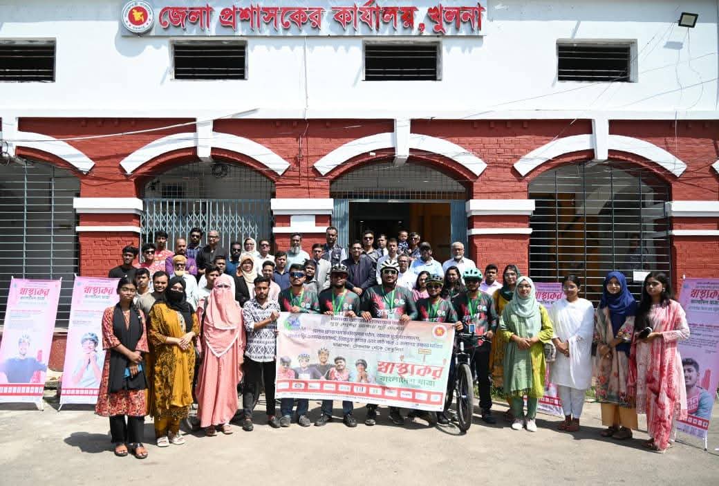 এম জালাল উদ্দীন : খুলনায় বেসরকারি উন্নয়ন সংস্থা সিয়াম এর আয়োজনে “We are for the next generation – সুস্থ দেশের আশায় দুই চাকায়” শ্লোগানকে সামনে রেখে “স্বাস্থ্যকর বাংলাদেশ যাত্রা” কর্মসূচির শুভ উদ্বোধন অনুষ্ঠিত হয়েছে। বৃহস্পতিবার(২৫ সেপ্টেম্বর) জেলা প্রশাসকের কার্যালয়ের প্রাঙ্গণে আয়োজিত এ অনুষ্ঠানে প্রধান অতিথি ছিলেন খুলনা বিভাগীয় কমিশনার মোঃ ফিরোজ সরকার। অনুষ্ঠানে সভাপতিত্ব করেন খুলনা জেলা প্রশাসক ও জেলা ম্যাজিস্ট্রেট মোঃ তৌফিকুর রহমান। বিশেষ অতিথি হিসেবে উপস্থিত ছিলেন বাংলাদেশ তামাক বিরোধী জোটের সমন্বয়কারী সাইফুদ্দিন আহমেদ। উদ্বোধনী অনুষ্ঠানের সঞ্চালনা করেন সিয়ামের নির্বাহী পরিচালক এ্যাড. মোঃ মাছুম বিল্লাহ। এসময় সরকারি ও বেসরকারি প্রতিষ্ঠানের কর্মকর্তা-কর্মচারীসহ বিভিন্ন শ্রেণিপেশার মানুষ উপস্থিত ছিলেন। উল্লেখ্য, সিয়ামের ৫ জন স্বেচ্ছাসেবী “স্বাস্থ্যকর বাংলাদেশ যাত্রা” কর্মসূচির অংশ হিসেবে বাংলাবান্ধা (পঞ্চগড়) থেকে ইনানী (কক্সবাজার) পর্যন্ত সাইকেল চালিয়ে ক্রস কান্ট্রি প্রচারণা চালাবেন। তারা স্বাস্থ্যকর জীবনধারা, তামাক নিয়ন্ত্রণ আইন বাস্তবায়ন, কার্বনমুক্ত যানবাহনের ব্যবহার, স্বাস্থ্যকর খাবার গ্রহণ, মাঠ-পার্ক-জলাশয় রক্ষা এবং পরিবেশবান্ধব নানা দাবি তুলে ধরবেন। এই যাত্রা সারা দেশে স্বাস্থ্যসচেতনতা ছড়িয়ে দিতে গুরুত্বপূর্ণ ভূমিকা রাখবে বলে আয়োজকরা আশাবাদ ব্যক্ত করেন