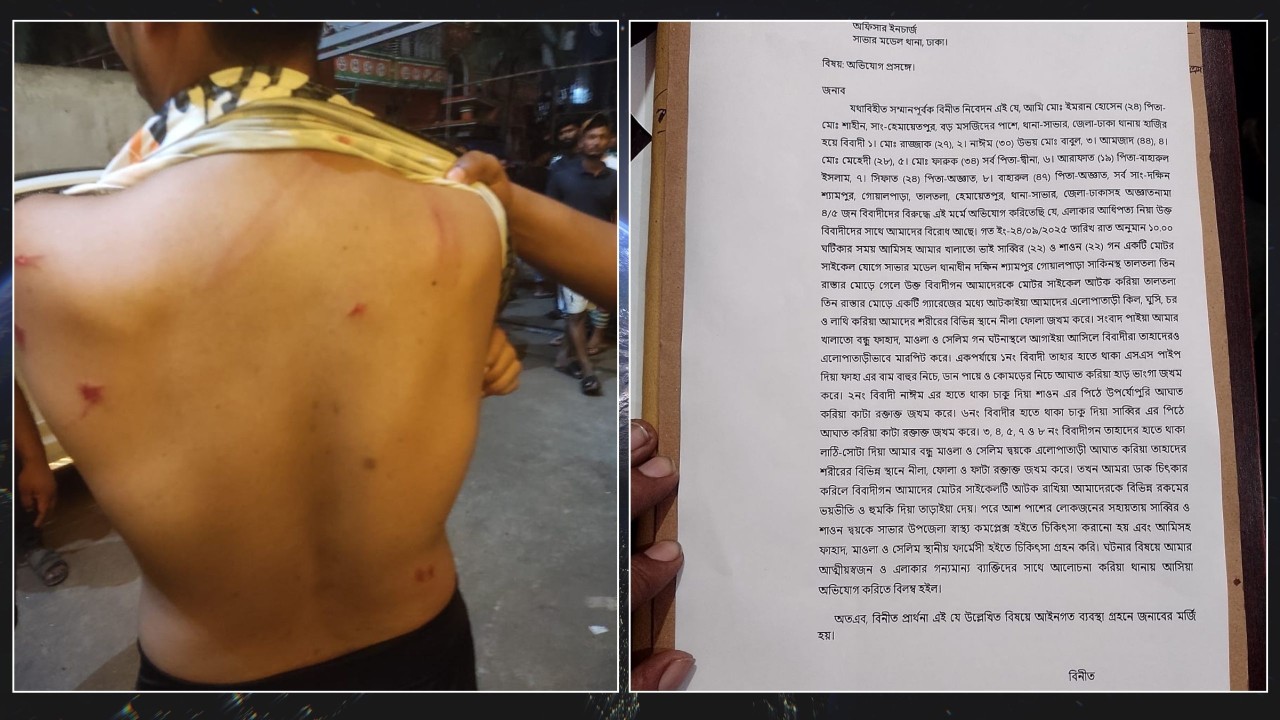 আহতরা হলেন—ইমরান হোসেন (২৪), সাব্বির (২২), শাওন (২২), ফাহাদ ও মাওলা। তাদের মধ্যে সাব্বির ও শাওনকে সাভার উপজেলা স্বাস্থ্য কমপ্লেক্সে ভর্তি করা হয়েছে এবং অন্যরা স্থানীয়ভাবে চিকিৎসা নিয়েছেন।