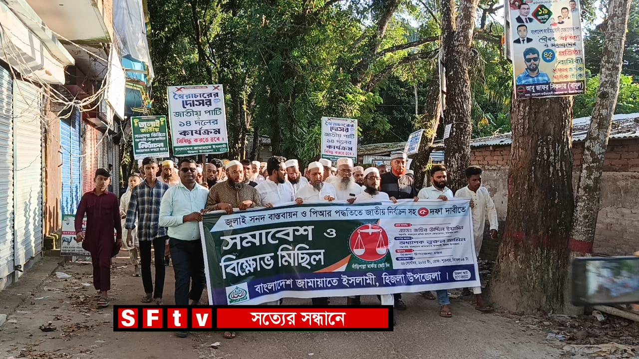 হিজলায় জুলাই সনদ বাস্তবায়ন,পি আর সহ ৫ দফা দাবিতে জামায়াতের বিক্ষোভ ।