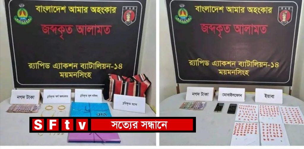 তাদের স্বীকারোক্তির ভিত্তিতে র্যাব চুরি যাওয়া ব্যাগসহ জমির দলিলপত্র, প্রায় ৭ ভরি স্বর্ণালংকার এবং নগদ ১৭ হাজার টাকা উদ্ধার করে। এ ঘটনায় আইনগত ব্যবস্থা প্রক্রিয়াধীন রয়েছে। অন্যদিকে শনিবার (২৭ সেপ্টেম্বর ২০২৫) সকাল ১০টা ১০ মিনিটের দিকে র্যাব-১৪ এর অপর একটি আভিযানিক দল ময়মনসিংহ রেলস্টেশন এলাকায় অভিযান চালিয়ে ৯৬০ পিস ইয়াবা ট্যাবলেট উদ্ধার করে। র্যাব জানায়, সাধারণ মানুষের নিরাপত্তা নিশ্চিত করতে তাদের এই ধরনের অভিযান চলমান থাকবে।