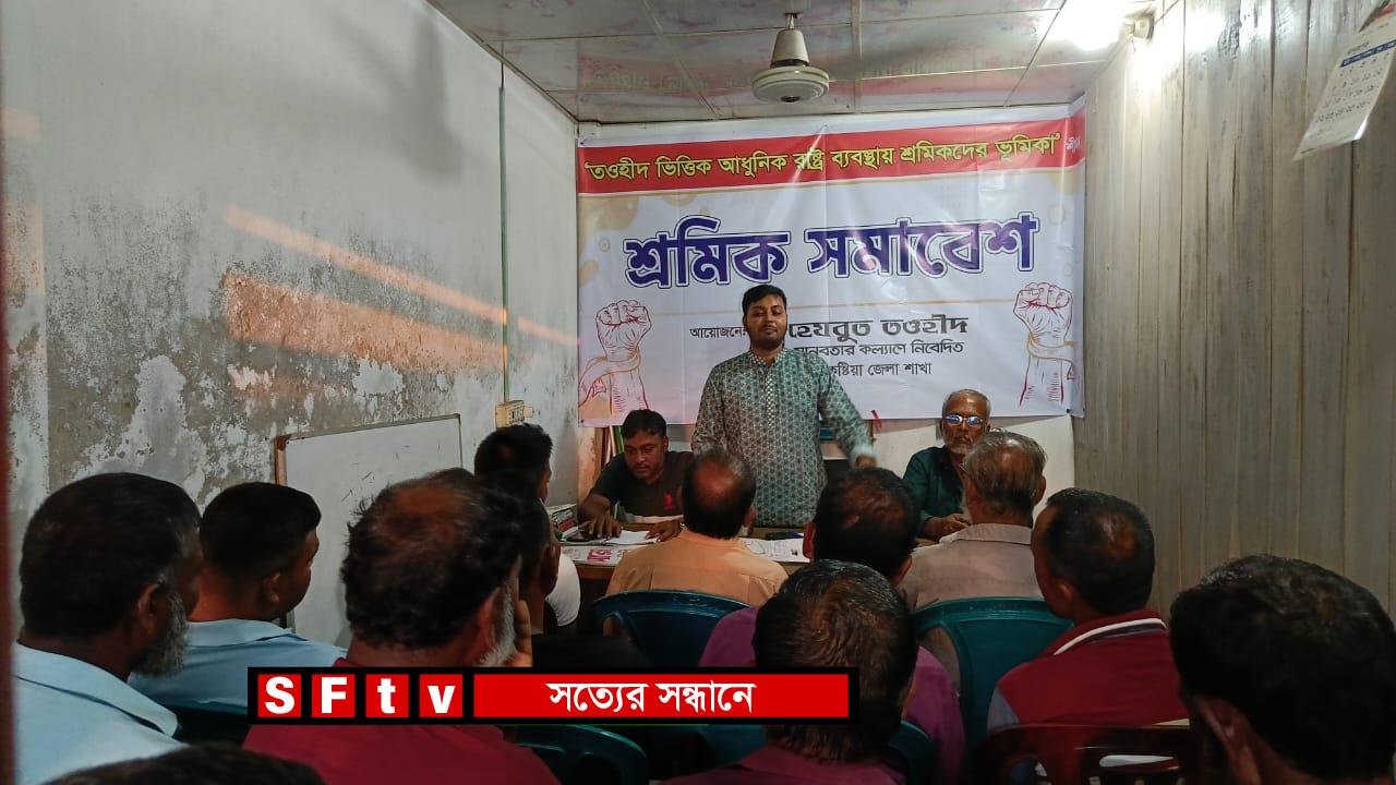 কুষ্টিয়া জেলার মিরপুর উপজেলার খাদিপুর বাজারে হেযবুত তওহীদের উদ্যোগে “তওহীদ ভিত্তিক আধুনিক রাষ্ট্র ব্যবস্থায় শ্রমিকদের ভূমিকা” শীর্ষক এক শ্রমিক সমাবেশ অনুষ্ঠিত হয়েছে। সোমবার (২৯ সেপ্টেম্বর ২০২৫) আসরের নামাজের পর এ সমাবেশে স্থানীয় শ্রমিক ও বিভিন্ন শ্রেণি-পেশার মানুষ অংশ নেন। সমাবেশে সভাপতিত্ব করেন হেযবুত তওহীদের মিরপুর উপজেলা সভাপতি মিজবা মুন্সি। মুখ্য আলোচক হিসেবে উপস্থিত ছিলেন সংগঠনের কেন্দ্রীয় সাংগঠনিক সম্পাদক মো. জসেব উদ্দিন। প্রধান আলোচকের বক্তব্যে তিনি বলেন, “শ্রমিকের ঘাম শুকানোর আগেই তার মজুরি পরিশোধ করার নিয়ম থাকলেও বর্তমান সমাজ ব্যবস্থায় তার উল্টোটা করা হচ্ছে। অথচ ইসলামে শ্রমিকের অধিকার রক্ষা করা শুধু সামাজিক দায়িত্ব নয়, বরং তা আল্লাহ ও তাঁর রাসূলের নির্দেশ। শ্রমিককে সম্মান দেওয়া, তার পরিশ্রমের যথাযথ মূল্য দেওয়া—এটাই প্রকৃত ইসলামী ন্যায়বিচার।” তিনি আরও বলেন, “আমাদের সমাজে যদি প্রকৃত ইসলাম প্রতিষ্ঠিত হয়, তাহলে শ্রমিকরা তাদের ন্যায্য মূল্য ফিরে পাবে এবং দেশের প্রতিটি জায়গায় নিরাপদে কাজ করতে পারবে।”