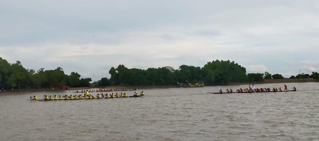 গ্রাম বাংলার ঐতিহ্যবাহী নৌকা বাইচ প্রতিযোগিতা অনুষ্ঠিত হয়েছে খুলনার পাইকগাছায়। শারদীয় দুর্গাপূজা উপলক্ষে বুধবার(১ অক্টোবর) বিকেলে উপজেলার সোলাদানা ও লস্কর ইউনিয়নের সীমান্তবর্তী কড়ুলিয়া নদীতে এ প্রতিযোগিতার আয়োজন করে আমুরকাটা সার্বজনীন দূর্গা মন্দির।প্রতিযোগিতায় দাকোপের রত্নাতরী ও কল্পতরী, এবং গড়ইখালী শান্তার আলমশাহী নৌকা বাইচ দল অংশগ্রহণ করে। প্রতিযোগিতা উপভোগ করতে নদীর দুই তীরে হাজারো দর্শনার্থীর সমাগম ঘটে।এসময় নৌকায় চড়ে প্রতিযোগিতা উপভোগ করেন খুলনা জেলা বিএনপির যুগ্ম আহবায়ক এডভোকেট মোমরেজুল ইসলাম এবং জিয়াউর রহমান ফাউন্ডেশনের ডাইরেক্টর আমিরুল ইসলাম কাগজী। প্রতিযোগিতার দায়িত্বে ছিলেন উপজেলা বিএনপির সাবেক সাধারণ সম্পাদক ও সোলাদানা ইউনিয়ন পরিষদের সাবেক চেয়ারম্যান এসএম এনামুল হক।রোমাঞ্চকর এ প্রতিযোগিতায় দুটি দলকে হারিয়ে গড়ইখালী শান্তার আলমশাহী নৌকা দল চ্যাম্পিয়ন হওয়ার গৌরব অর্জন করে।প্রতিযোগিতা শেষে আমুরকাটা সার্বজনীন দূর্গা মন্দির কমিটির সভাপতি সমীরণ কুমার মন্ডলের সভাপতিত্বে পুরস্কার বিতরণী অনুষ্ঠান অনুষ্ঠিত হয়। এতে ইউনিয়ন পরিষদের ভারপ্রাপ্ত চেয়ারম্যান পীযুষ কান্তি মন্ডলসহ আমন্ত্রিত অতিথিবৃন্দ উপস্থিত ছিলেন।